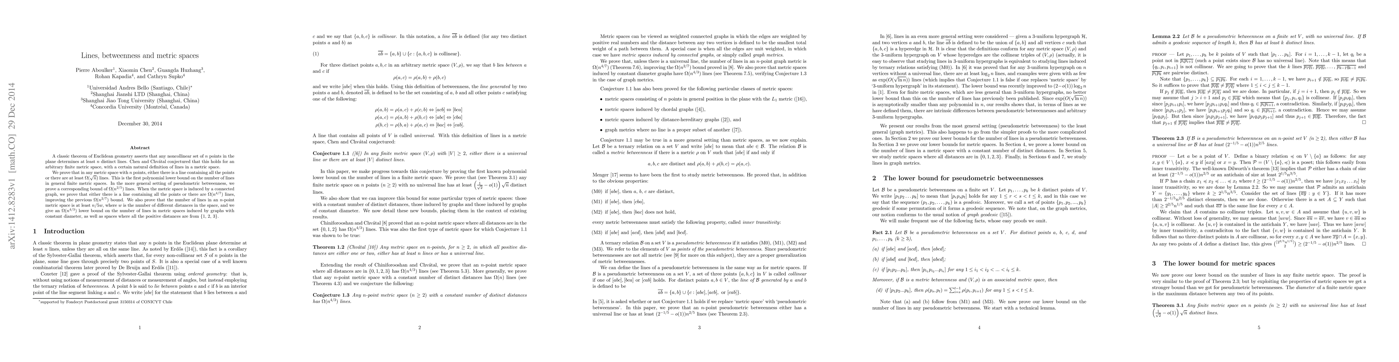 This paper proves that in any finite metric space with $n$ points, there exists either a line containing all points or at least $\Omega(\sqrt{n})$ lines, establishing the first polynomial lower bound on lines in metric spaces. It also improves bounds for metric spaces induced by connected graphs and provides bounds based on the number of distinct distances.