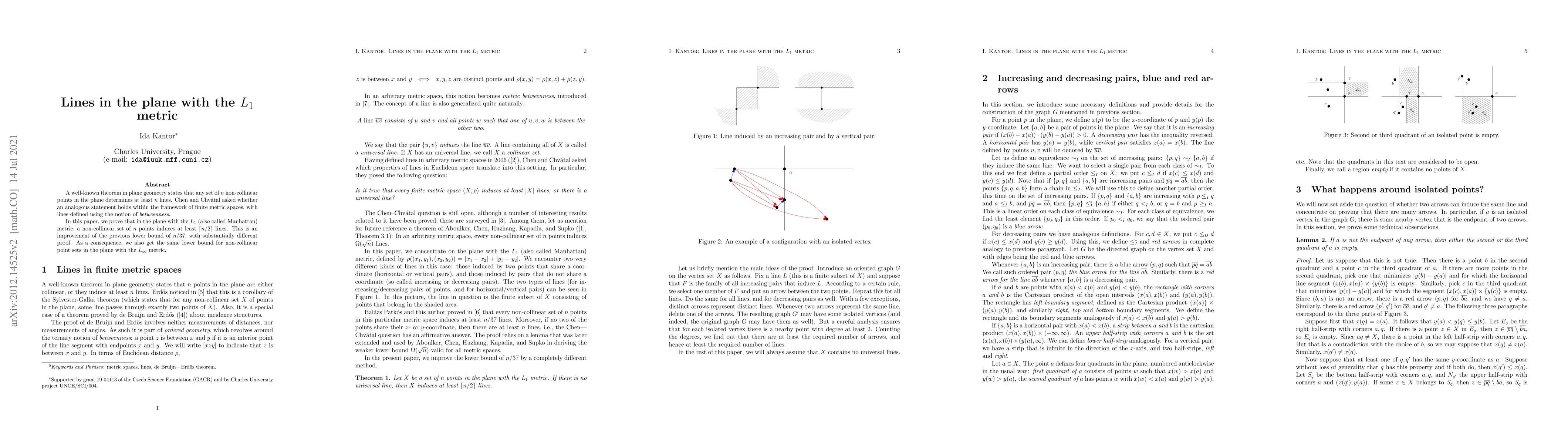 This paper proves that a set of $n$ non-collinear points in the plane with the $L_1$ metric induces at least $\lceil n/2 \rceil$ lines, improving the previous lower bound and providing a different proof. The result also extends to the $L_{\infty}$ metric.