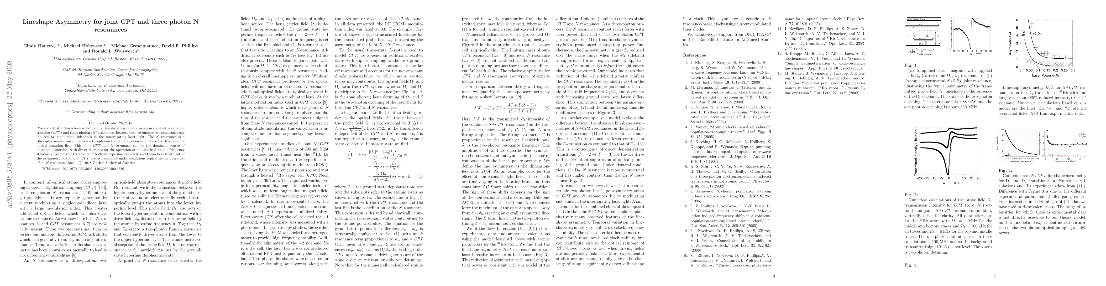 This paper investigates the lineshape asymmetry arising from joint coherent population trapping (CPT) and three-photon (N) resonances, showing that modulation sidebands in laser light induce this asymmetry. The study combines experimental results with theoretical analysis to understand the implications for atomic frequency standards, particularly miniaturized N resonance clocks.