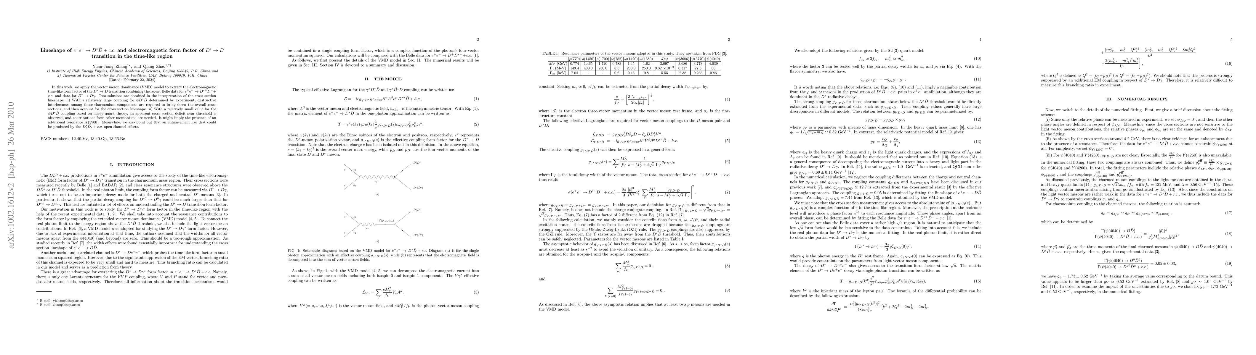 This paper uses the vector meson dominance model to analyze the electromagnetic form factor of $D^*\to D$ transition, finding two possible interpretations of the cross section lineshape: one requiring destructive interference among charmonium components and another suggesting an additional resonance or open channel effects.