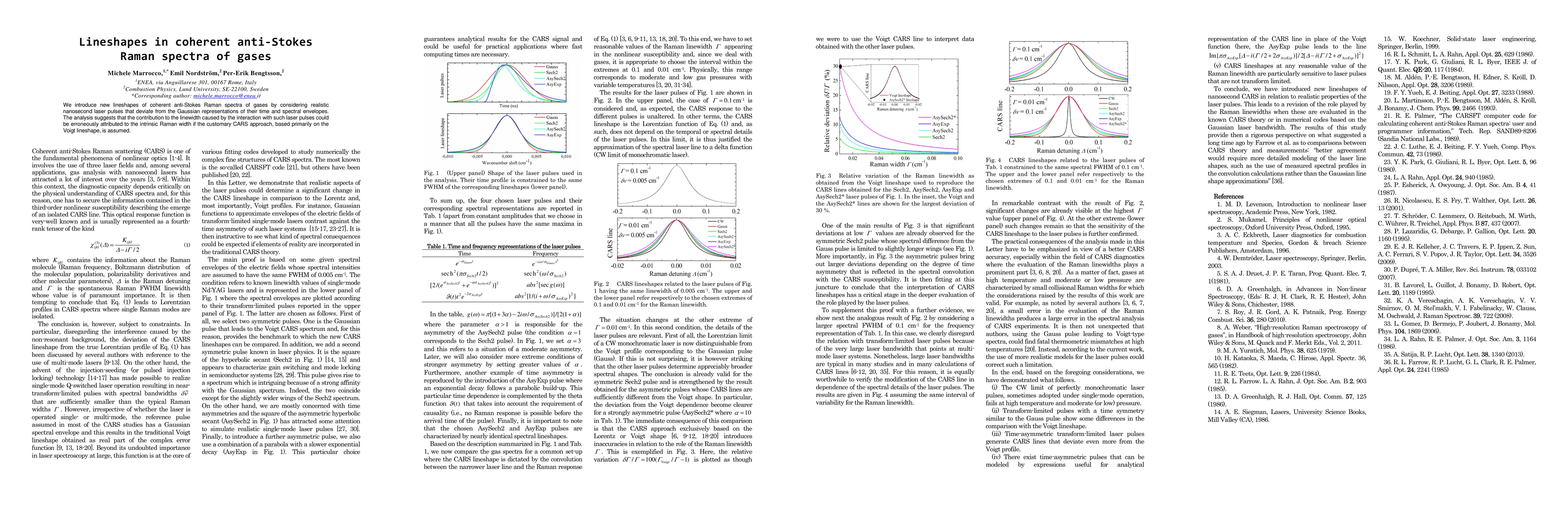 This paper investigates the lineshapes in coherent anti-Stokes Raman spectra (CARS) of gases using nanosecond laser pulses that differ from Gaussian profiles, revealing potential misattribution of linewidth contributions to intrinsic Raman width when traditional Voigt lineshape models are applied.
