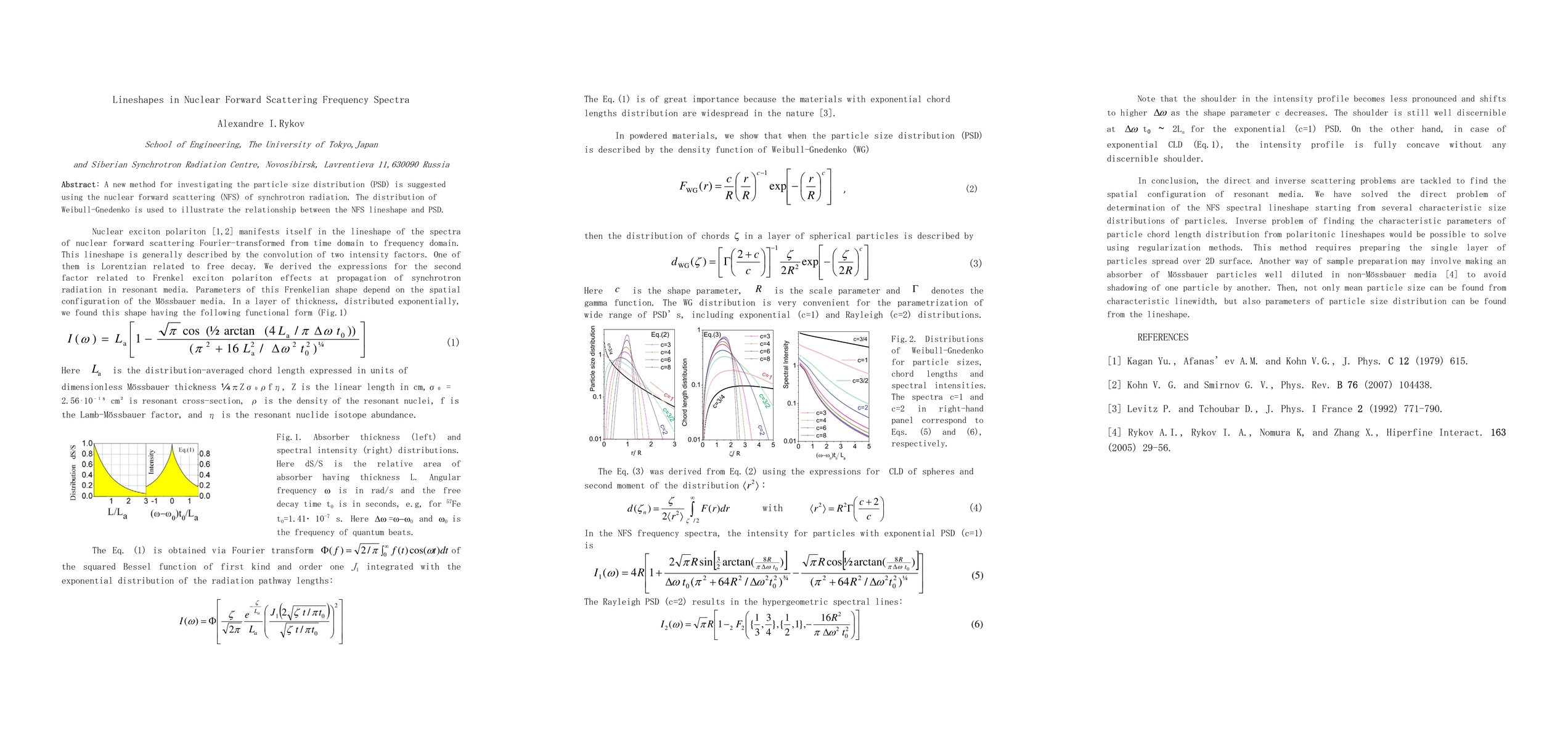 A new method for investigating the particle size distribution (PSD) is suggested using the nuclear forward scattering (NFS) of synchrotron radiation. The distribution of Weibull-Gnedenko is used to illustrate the relationship between the NFS lineshape and PSD.