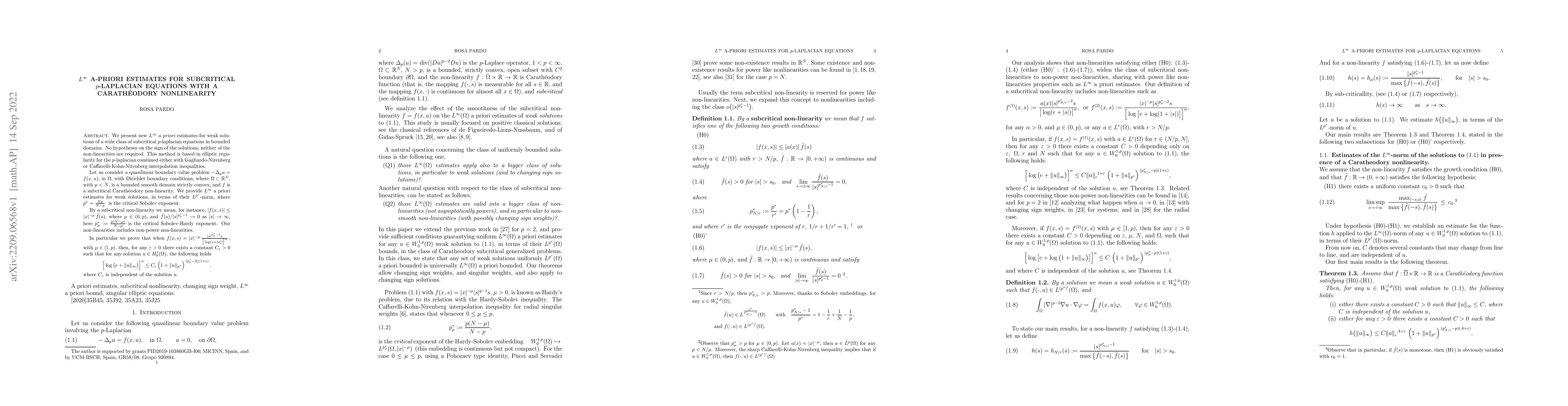class of subcritical $p$-laplacian equations in bounded domains. No hypotheses