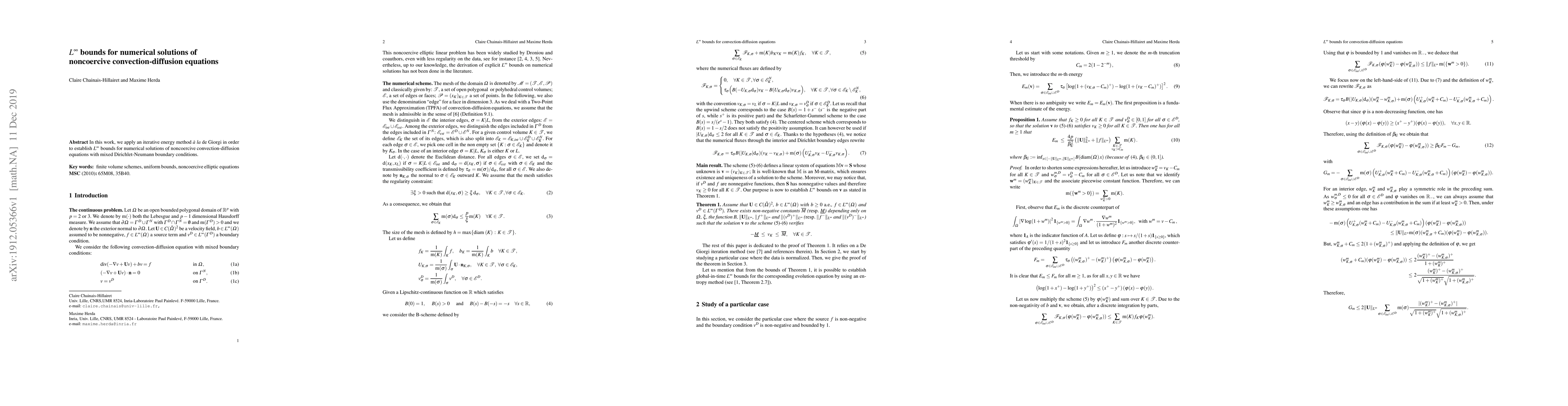 This research introduces an iterative energy method to prove $L^{infty}$ bounds for numerical solutions of noncoercive convection-diffusion equations, addressing mixed Dirichlet-Neumann boundary conditions.