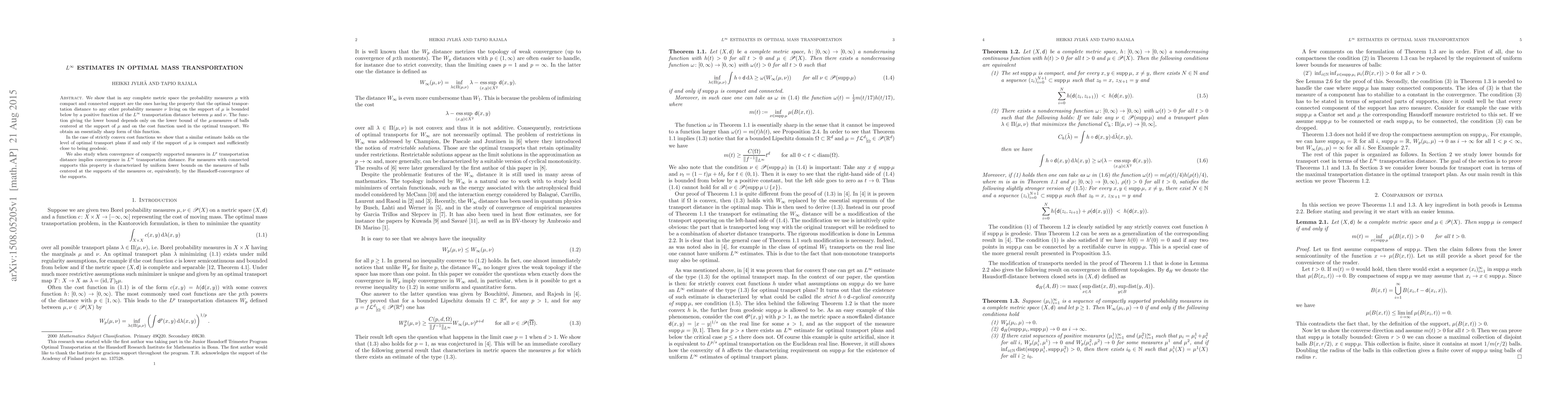 Researchers show that in complete metric spaces, measures with compact and connected support have optimal transportation distance bounded below by a positive function of the $L^ty$ transportation distance between them.