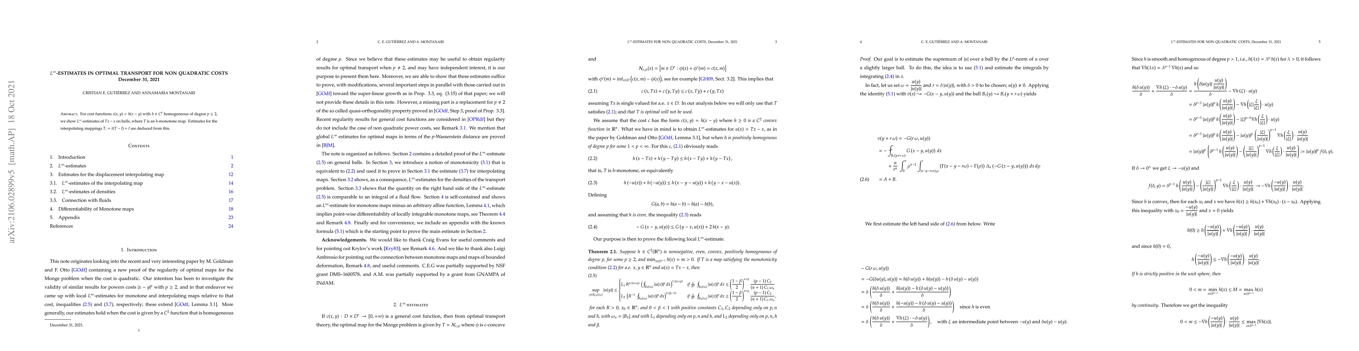For cost functions $c(x,y)=h(x-y)$ with $h\in C^2$ homogeneous of degree $p\geq 2$, we show $L^\infty$-estimates of $Tx-x$ on balls, where $T$ is an $h$-monotone map. Estimates for the interpolating mappings $T_t=t(T-I)+I$ are deduced from this.