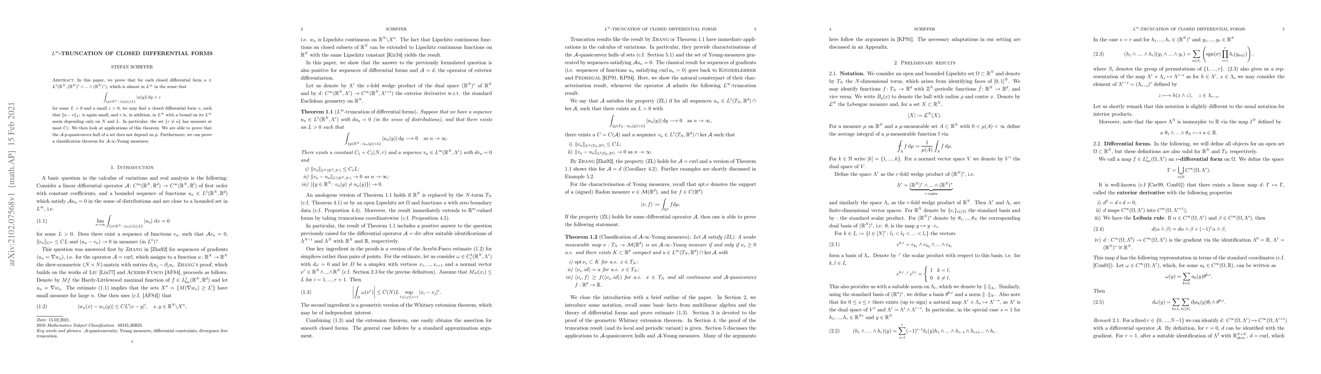 This paper proves that a nearly $L^ ext{infty}$-bounded closed differential form can be approximated by another closed form in $L^ ext{infty}$ with minimal error, allowing for classification theorems and applications to quasiconvex hulls and Young measures.