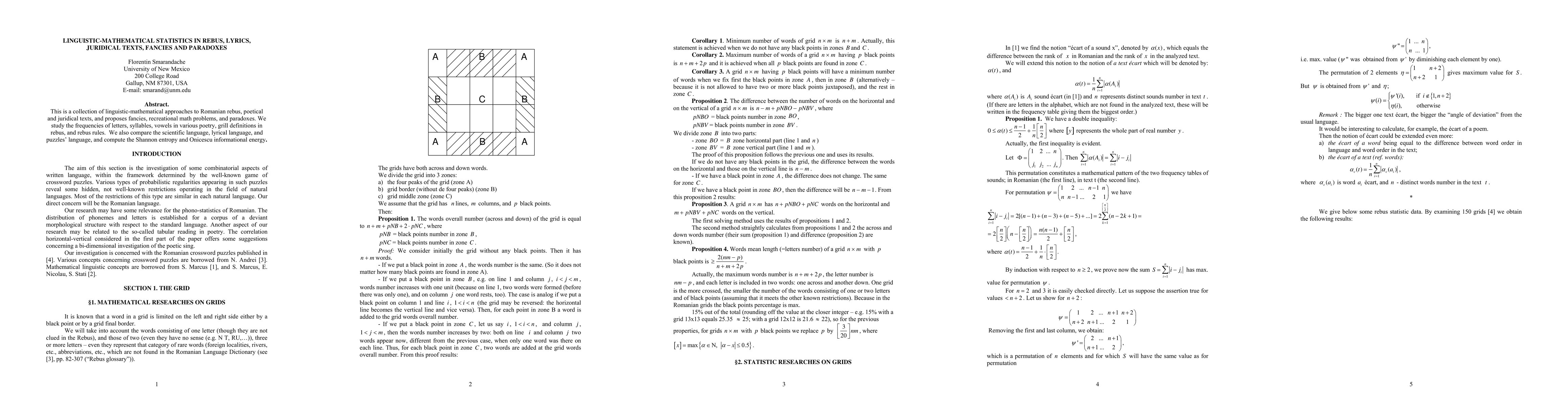 This paper applies linguistic-mathematical statistics to various forms of texts in Romanian, including rebus puzzles and poetry, to explore patterns and frequencies of letters and syllables.