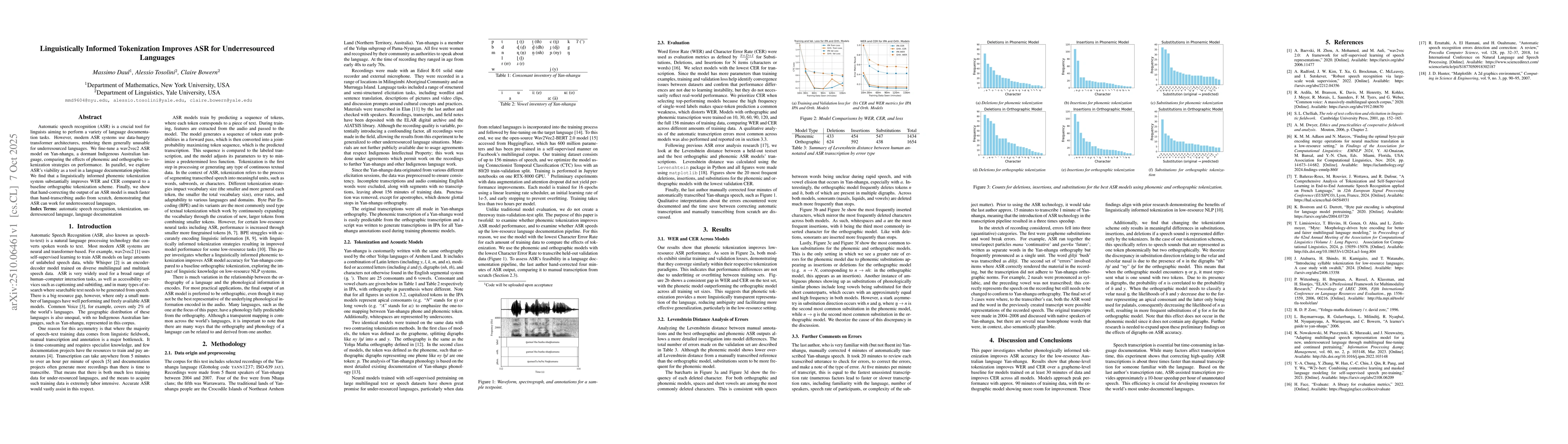 This research demonstrates that linguistically informed tokenization can enhance ASR performance for under-resourced languages, making it a viable tool for language documentation and preservation.