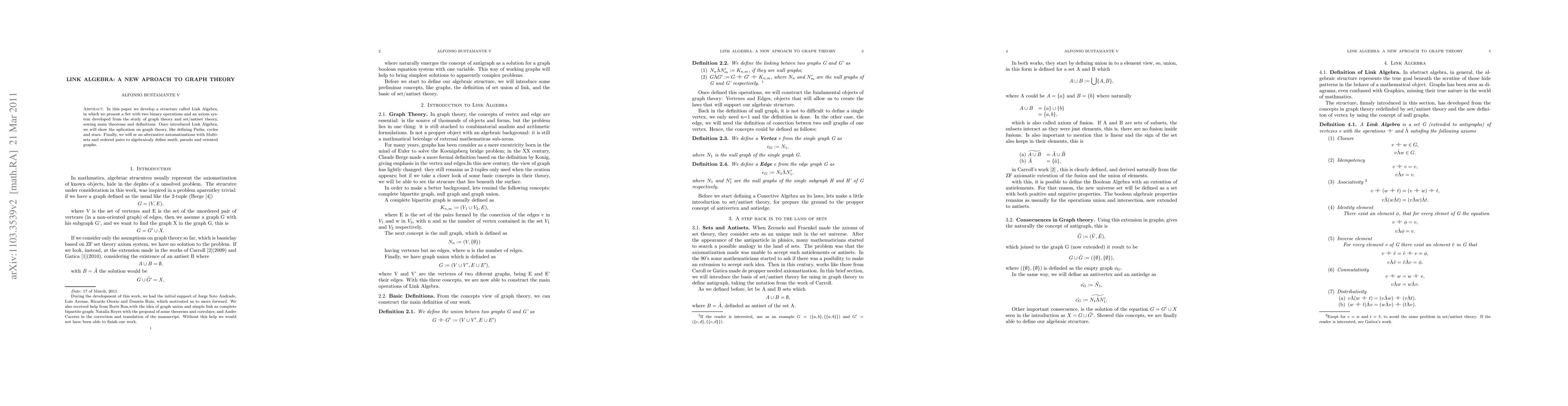 Researchers introduce Link Algebra, a new approach to graph theory that uses set operations to define paths, cycles, and stars in graphs. This algebraic framework provides alternative axiomatizations for multi-, pseudo-, and oriented graphs.