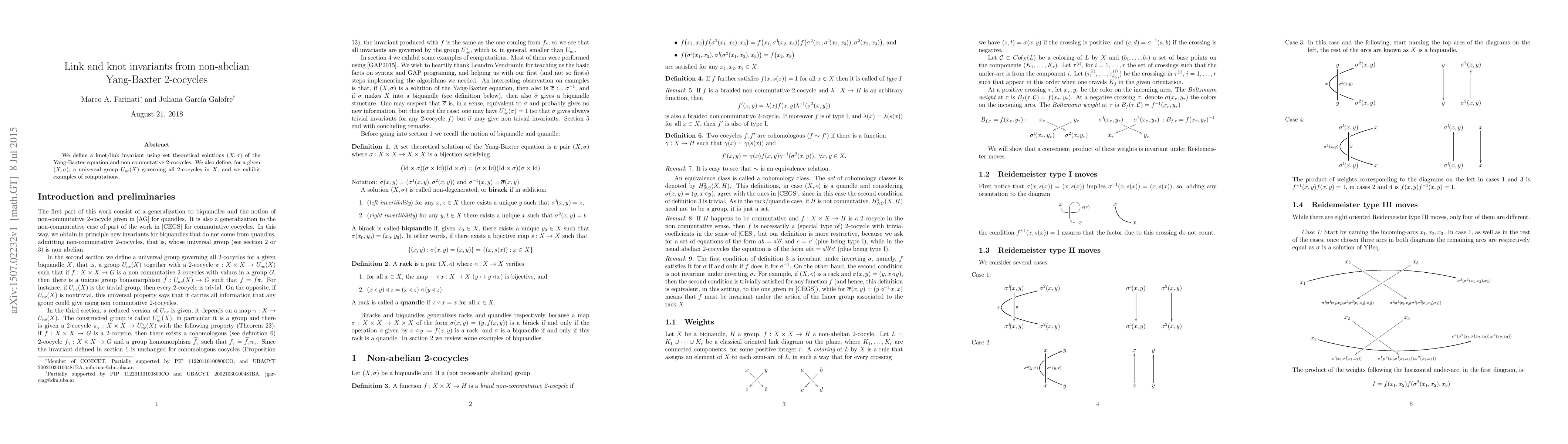 A new knot/link invariant is defined using solutions to the Yang-Baxter equation and non-commutative 2-cocycles, with implications for understanding knots and links in a more abstract mathematical framework.