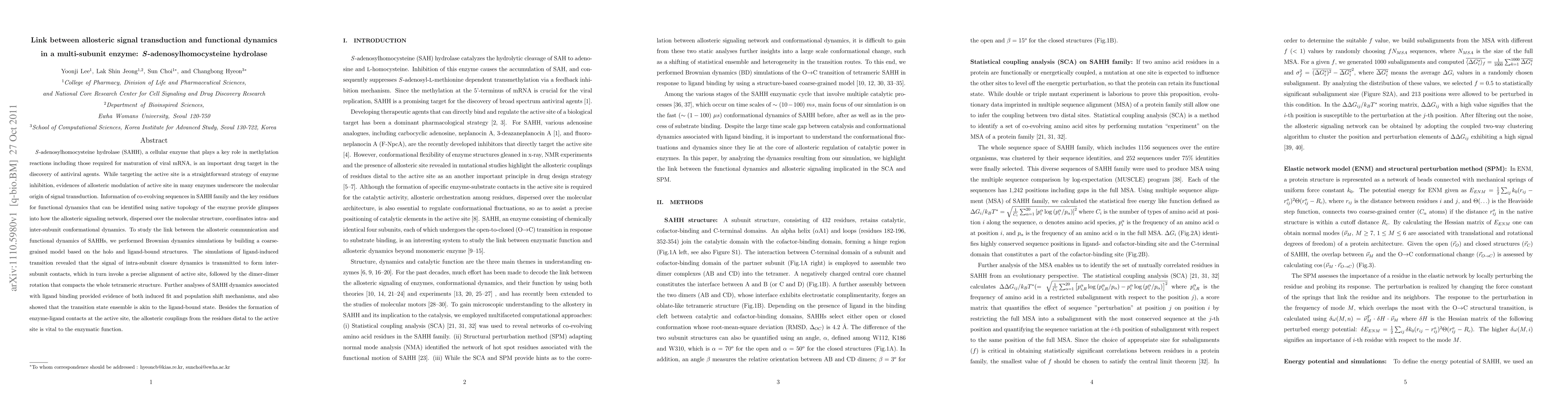 This research investigates the allosteric signal transduction and functional dynamics in S-adenosylhomocysteine hydrolase (SAHH) using Brownian dynamics simulations. The study reveals that ligand-induced intra-subunit closure dynamics propagate to form inter-subunit contacts, leading to a precise alignment of the active site and a tetrameric structure rotation, highlighting the importance of allosteric coupling for enzymatic function.