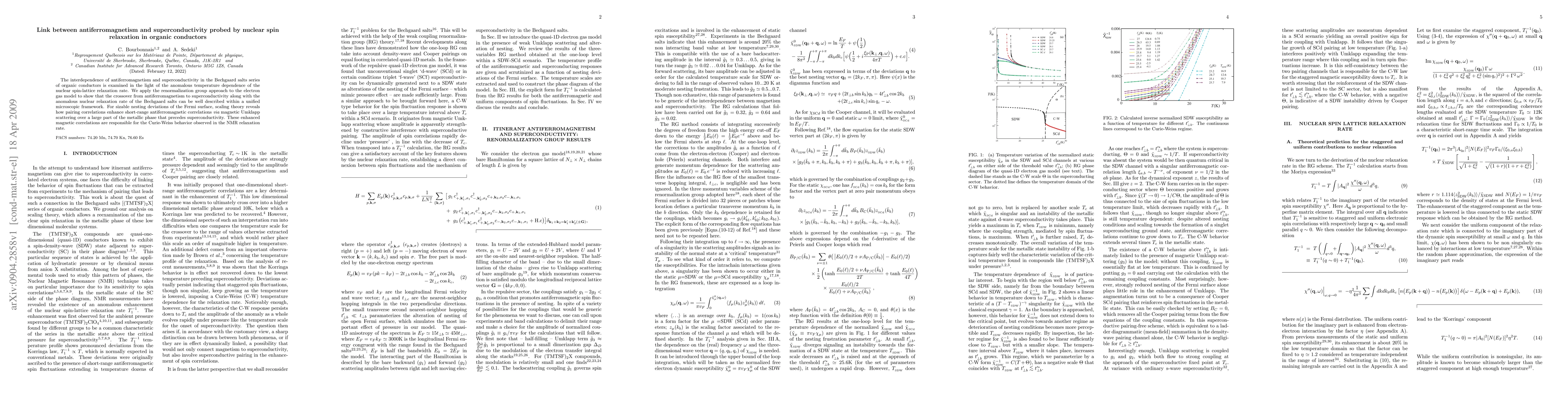 This study investigates the relationship between antiferromagnetism and superconductivity in Bechgaard salts using nuclear spin relaxation, revealing that enhanced magnetic correlations due to pairing correlations influence the transition from antiferromagnetism to superconductivity, as explained by a renormalization group approach. The Curie-Weiss behavior in NMR relaxation rates is attributed to these enhanced magnetic correlations.