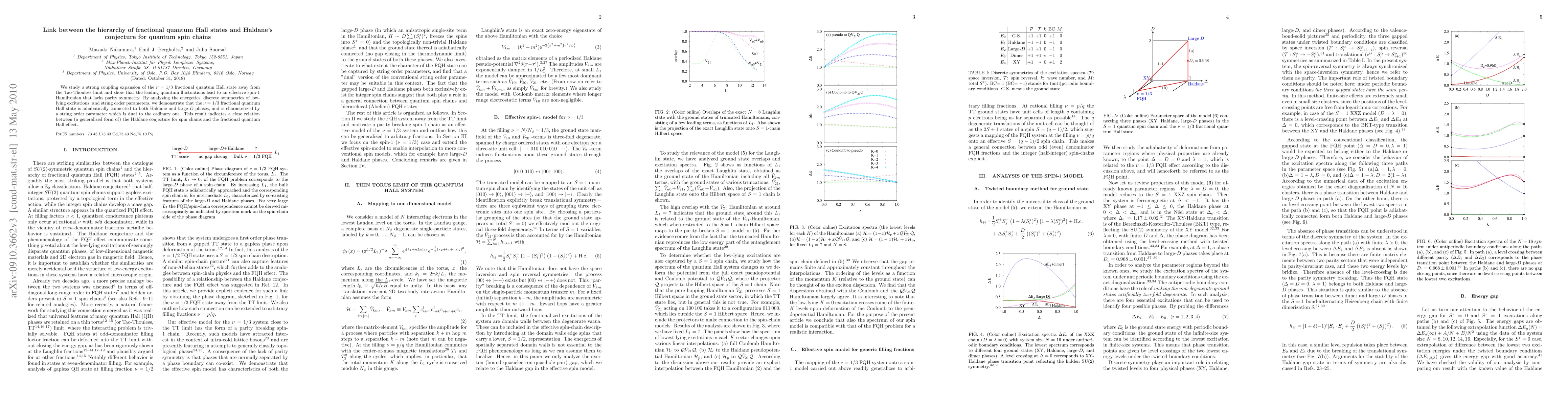 This paper demonstrates a strong coupling expansion of the $\nu=1/3$ fractional quantum Hall state, revealing an effective spin-1 Hamiltonian that lacks parity symmetry. It shows a connection between this state and both Haldane and large-$D$ phases, indicating a relation between the Haldane conjecture for spin chains and the fractional quantum Hall effect.