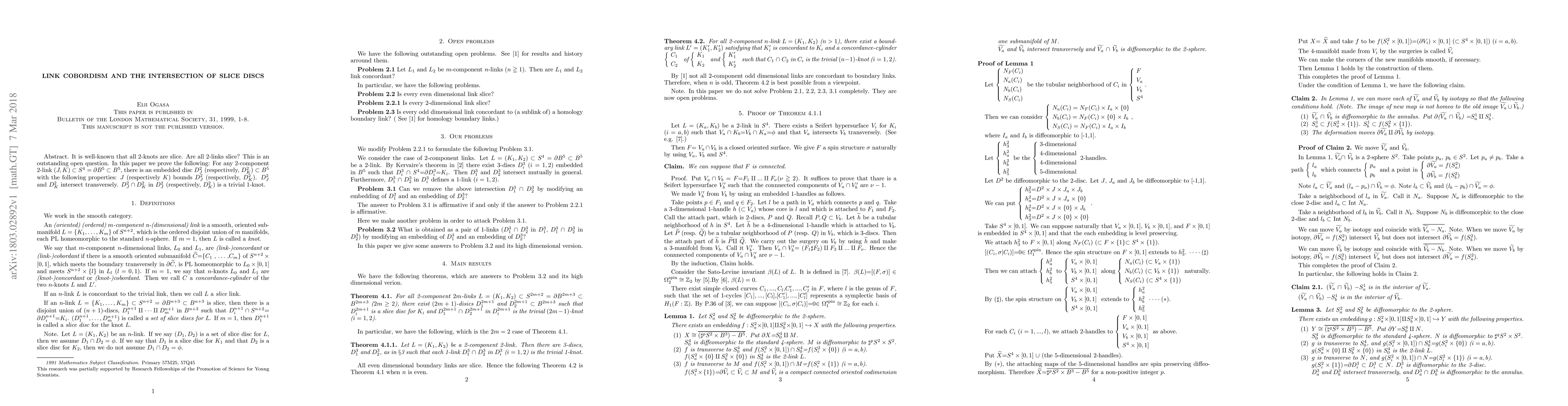 It is well-known that all 2-knots are slice. Are all 2-links slice? This is an outstanding open question. In this paper we prove the following: For any 2-component 2-link (J,K)in the 4-sphere which bounds the 5-ball B^5, there is an embedded disc 2-disc D^2_J (respectively, D^2_K) in B^5 with the following properties: J (respectively K) bounds D^2_J (respectively, D^2_K). D^2_J and D^2_K intersect transversely. the intersection of D^2_J and D^2_K in D^2_J (respectively, D^2_K) is a trivial 1-knot.