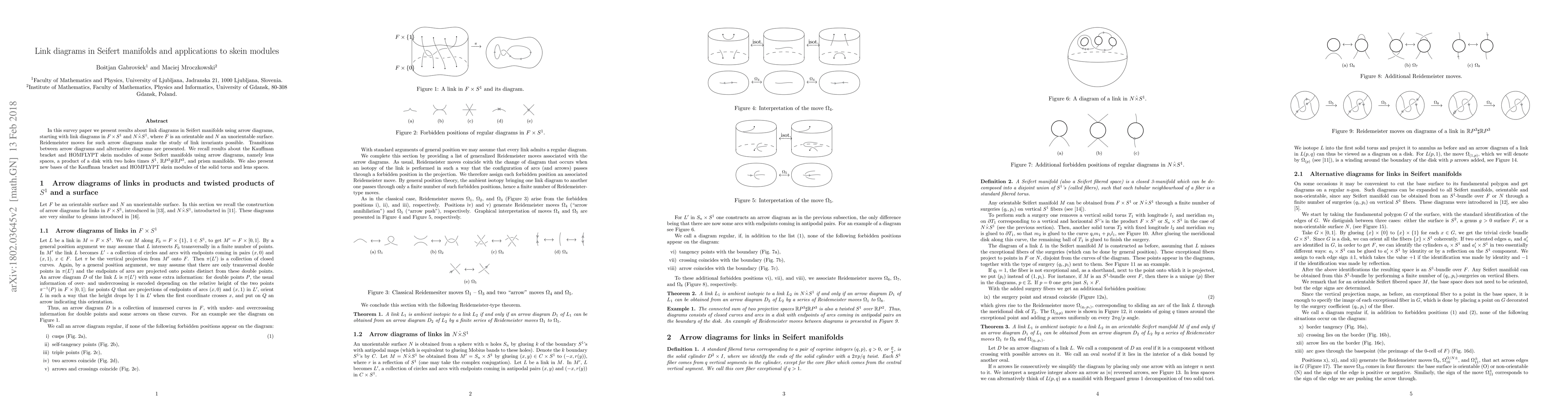 This paper surveys link diagrams in Seifert manifolds using arrow diagrams, focusing on $F\times S^1$ and $N\hat{\times}S^1$ surfaces. It explores link invariants via Reidemeister moves and transitions between diagram types, presenting new bases for Kauffman bracket and HOMFLYPT skein modules of the solid torus and lens spaces.