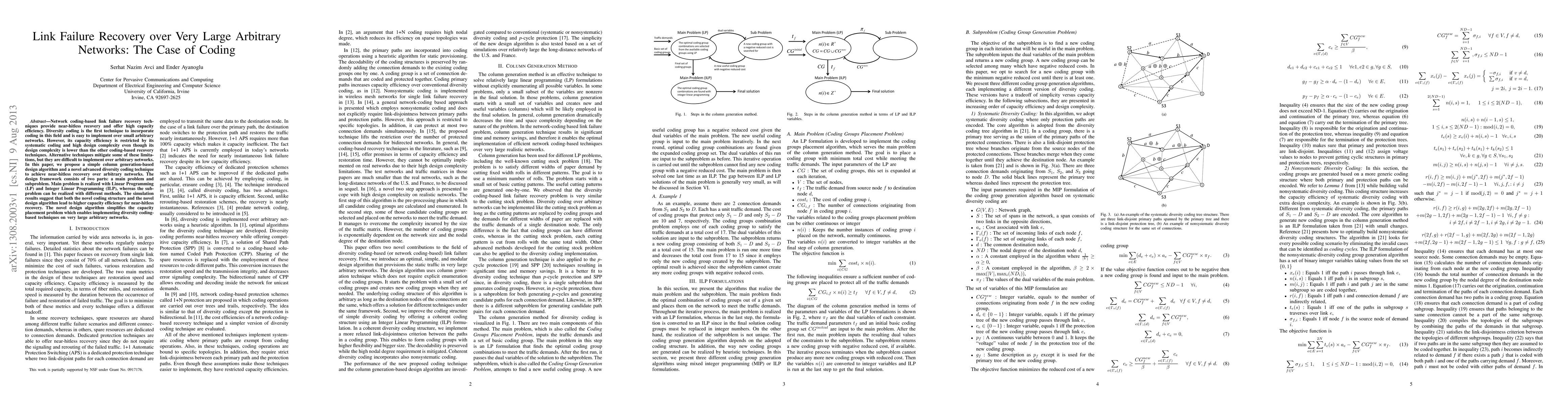 This paper proposes a novel advanced diversity coding technique and a simple column generation-based design algorithm for near-hitless link failure recovery in large arbitrary networks, achieving higher capacity efficiency and simplifying implementation compared to existing methods. Simulation results demonstrate improved efficiency and feasibility over extensive networks.