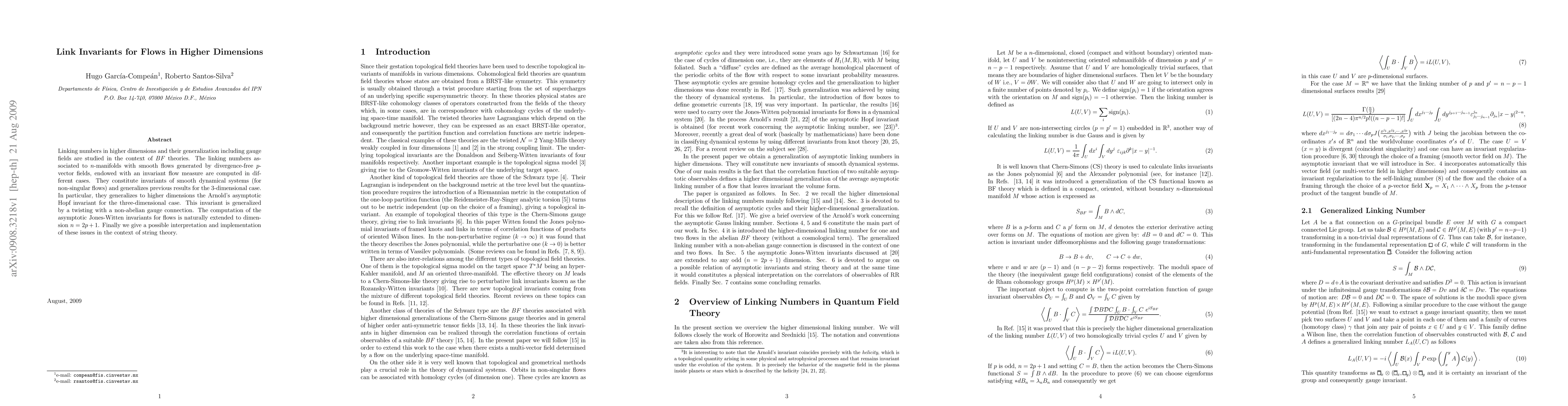 This paper studies linking numbers in higher dimensions, generalizing Arnold's asymptotic Hopf invariant and extending it with gauge fields in BF theories. It computes invariants for smooth flows in $n$-manifolds, offering a higher-dimensional perspective on dynamical systems and proposing an interpretation within string theory.