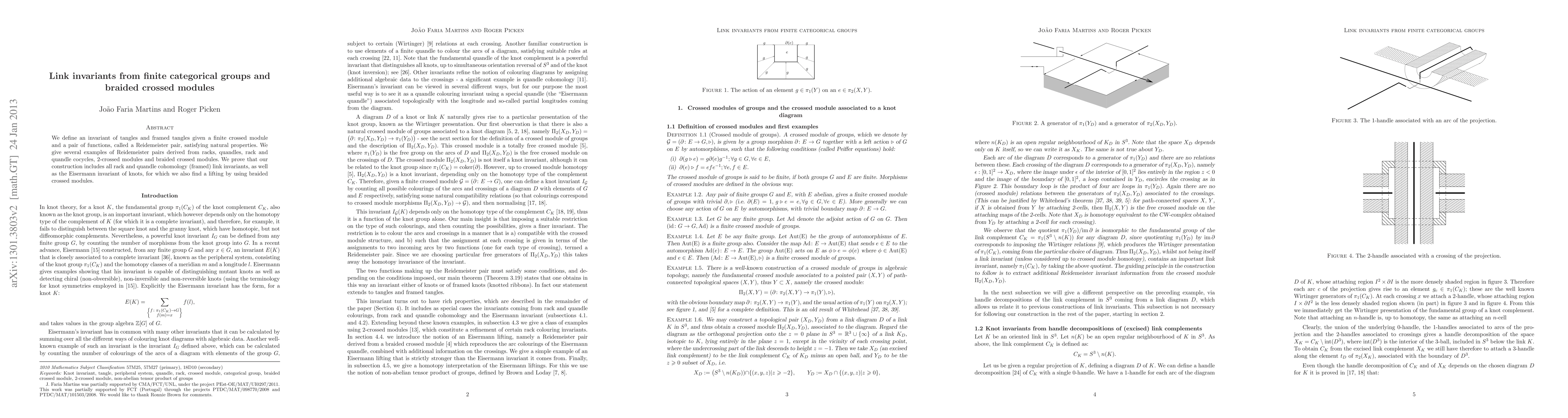 We define an invariant of tangles and framed tangles given a finite crossed module and a pair of functions, called a Reidemeister pair, satisfying natural properties. We give several examples of Reidemeister pairs derived from racks, quandles, rack and quandle cocycles, 2-crossed modules and braided crossed modules. We prove that our construction includes all rack and quandle cohomology (framed) link invariants, as well as the Eisermann invariant of knots, for which we also find a lifting by using braided crossed modules.