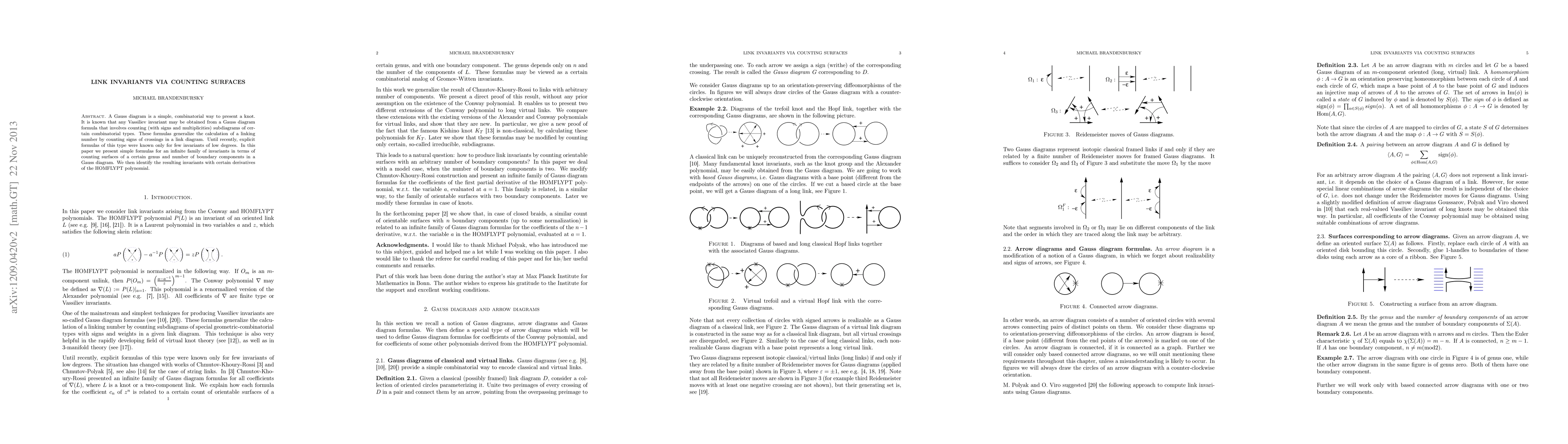 A Gauss diagram is a simple, combinatorial way to present a knot. It is known that any Vassiliev invariant may be obtained from a Gauss diagram formula that involves counting (with signs and multiplicities) subdiagrams of certain combinatorial types. These formulas generalize the calculation of a linking number by counting signs of crossings in a link diagram. Until recently, explicit formulas of this type were known only for few invariants of low degrees. In this paper we present simple formulas for an infinite family of invariants in terms of counting surfaces of a certain genus and number of boundary components in a Gauss diagram. We then identify the resulting invariants with certain derivatives of the HOMFLYPT polynomial.