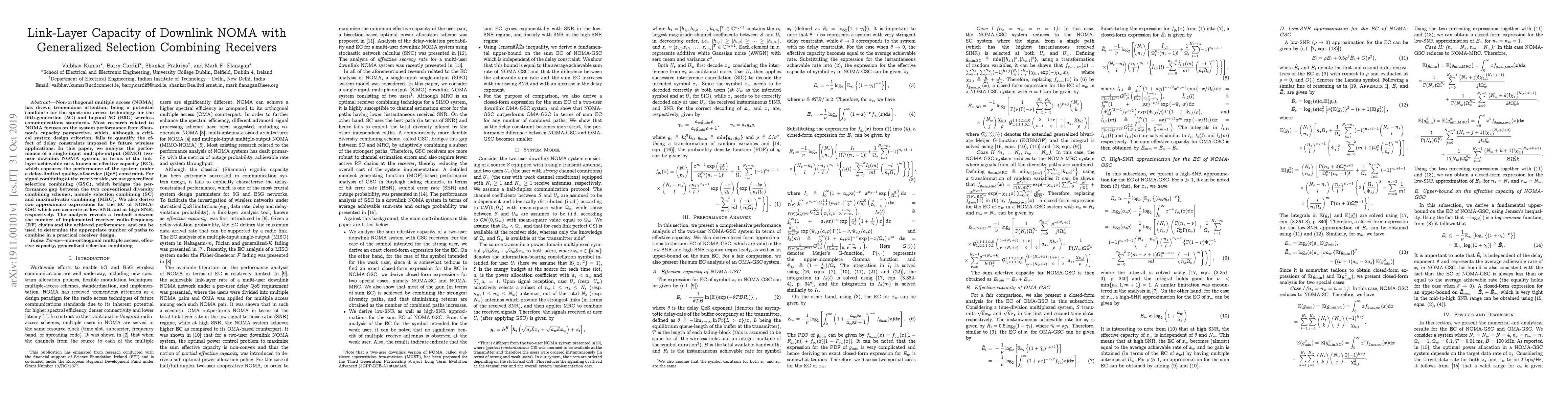 Non-orthogonal multiple access (NOMA) has drawn tremendous attention, being a potential candidate for the spectrum access technology for the fifth-generation (5G) and beyond 5G (B5G) wireless communications standards. Most research related to NOMA focuses on the system performance from Shannon's capacity perspective, which, although a critical system design criterion, fails to quantify the effect of delay constraints imposed by future wireless applications. In this paper, we analyze the performance of a single-input multiple-output (SIMO) two-user downlink NOMA system, in terms of the link-layer achievable rate, known as effective capacity (EC), which captures the performance of the system under a delay-limited quality-of-service (QoS) constraint. For signal combining at the receiver side, we use generalized selection combining (GSC), which bridges the performance gap between the two conventional diversity combining schemes, namely selection combining (SC) and maximal-ratio combining (MRC). We also derive two approximate expressions for the EC of NOMA-GSC which are accurate at low-SNR and at high-SNR, respectively. The analysis reveals a tradeoff between the number of implemented receiver radio-frequency (RF) chains and the achieved performance, and can be used to determine the appropriate number of paths to combine in a practical receiver design.