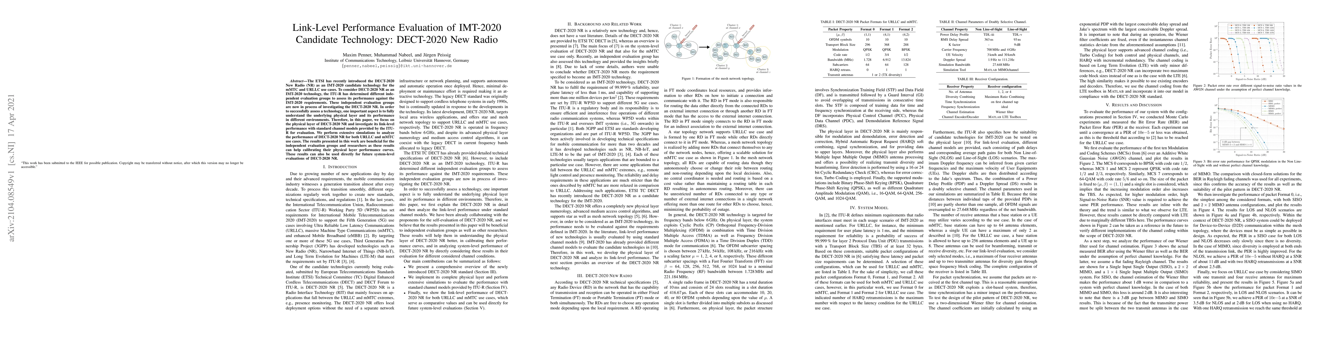 This work is novel as it focuses on evaluating DECT-2020 NR, a relatively new candidate technology for IMT-2020, and provides comprehensive link-level performance results that can directly aid in future evaluations.