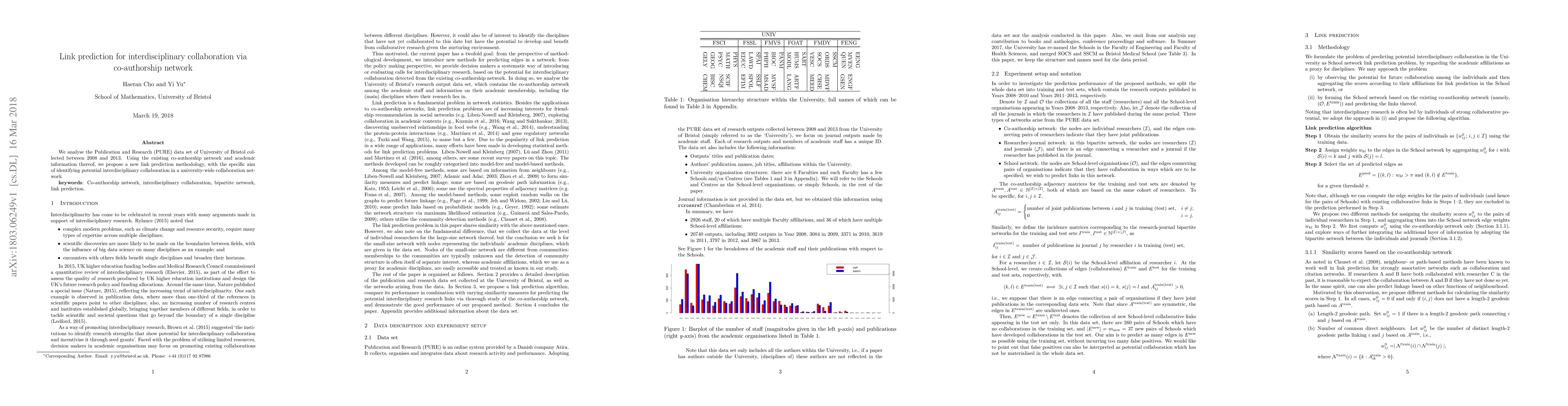 This paper proposes a new link prediction methodology to identify potential interdisciplinary collaborations within a university-wide co-authorship network using the University of Bristol's PURE data set from 2008 to 2013. The method aims to enhance interdisciplinary collaboration by predicting new connections based on existing academic and co-authorship networks.