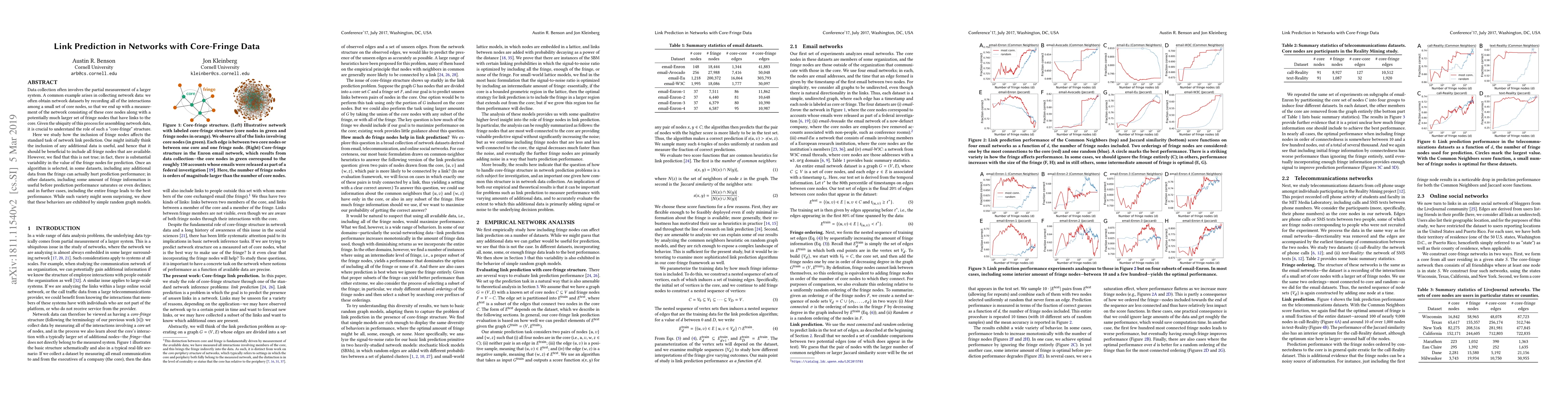 Data collection often involves the partial measurement of a larger system. A common example arises in collecting network data: we often obtain network datasets by recording all of the interactions among a small set of core nodes, so that we end up with a measurement of the network consisting of these core nodes along with a potentially much larger set of fringe nodes that have links to the core. Given the ubiquity of this process for assembling network data, it is crucial to understand the role of such a `core-fringe' structure. Here we study how the inclusion of fringe nodes affects the standard task of network link prediction. One might initially think the inclusion of any additional data is useful, and hence that it should be beneficial to include all fringe nodes that are available. However, we find that this is not true; in fact, there is substantial variability in the value of the fringe nodes for prediction. Once an algorithm is selected, in some datasets, including any additional data from the fringe can actually hurt prediction performance; in other datasets, including some amount of fringe information is useful before prediction performance saturates or even declines; and in further cases, including the entire fringe leads to the best performance. While such variety might seem surprising, we show that these behaviors are exhibited by simple random graph models.