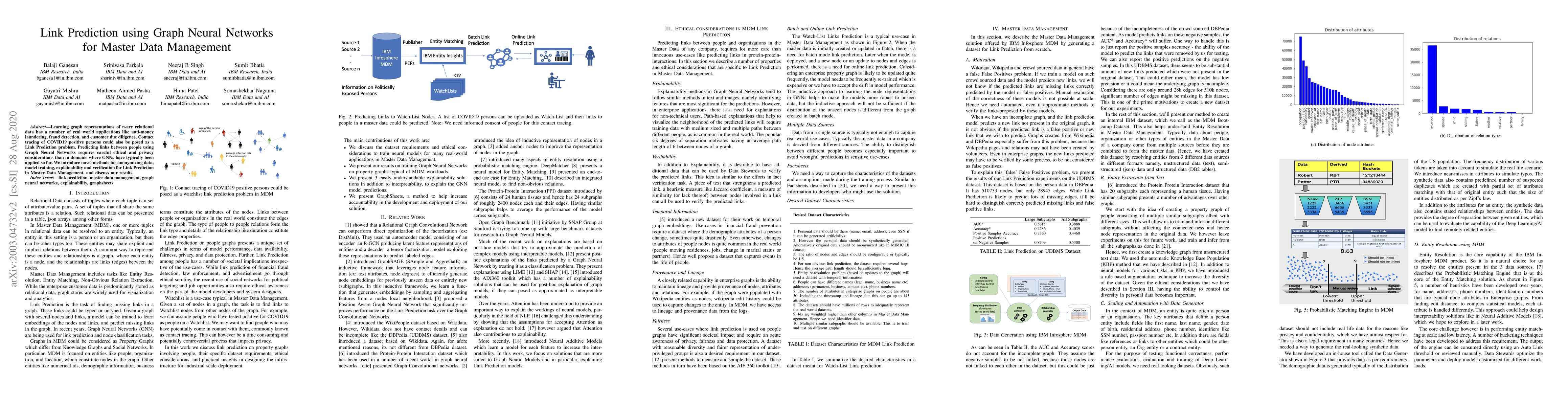 This paper proposes novel methods for link prediction using Graph Neural Networks in Master Data Management, emphasizing anonymization, ethical considerations, and model explainability. The authors discuss their results and the implications for applications like fraud detection and contact tracing.