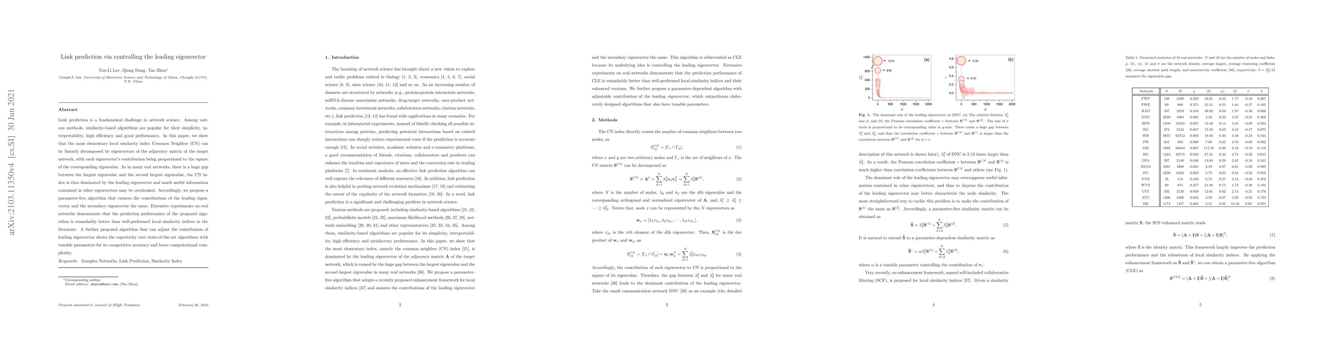 This paper proposes a parameter-free algorithm to control the contributions of leading and secondary eigenvectors in link prediction, enhancing the performance of the Common Neighbor index. Experiments show significant improvements over existing similarity-based methods, with the adjustable algorithm offering competitive accuracy and lower complexity.