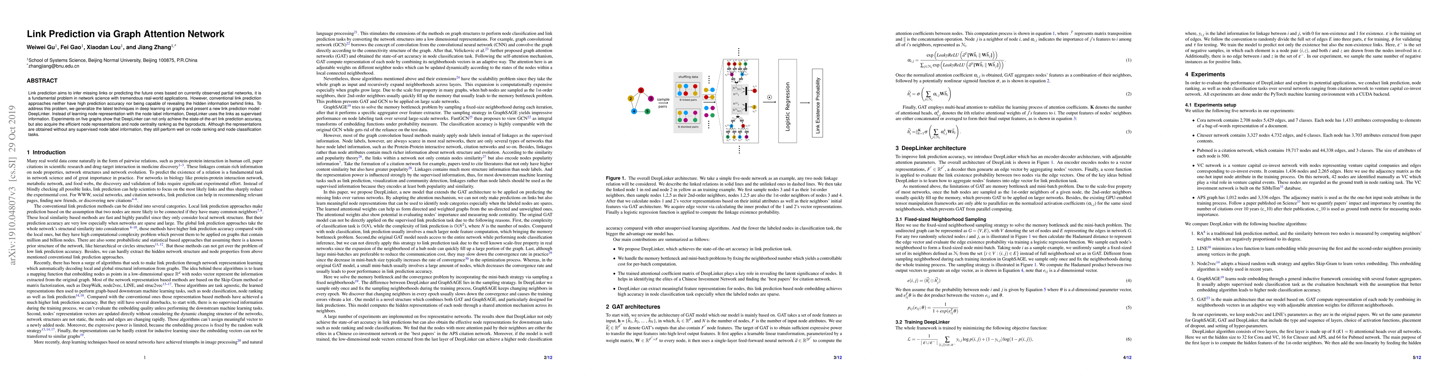 A new link prediction model called DeepLinker uses graph attention networks to predict missing links with high accuracy and produces efficient node representations as a byproduct.