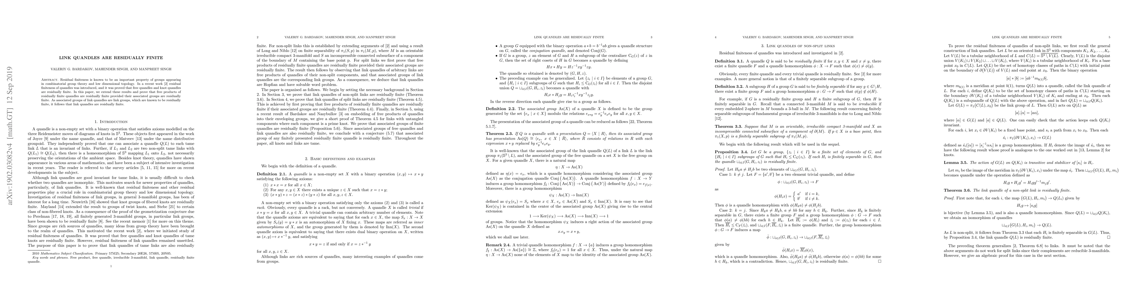 This paper proves that link quandles, which are associated with links in knot theory, possess the property of residual finiteness. It extends prior results showing that free quandles and knot quandles are residually finite by demonstrating that link quandles inherit this property due to their associated link groups being residually finite.