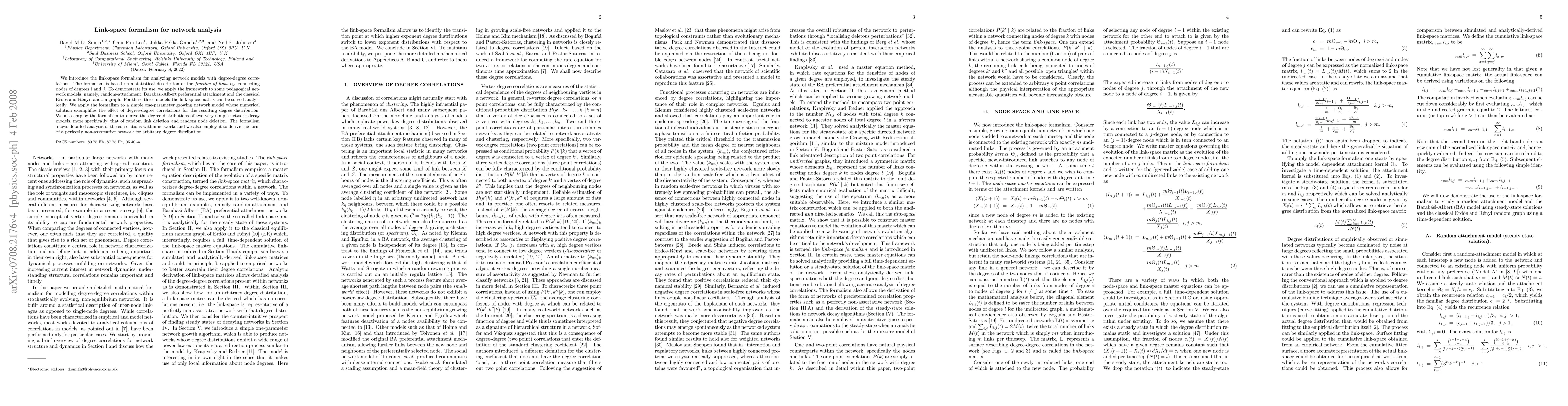 The paper introduces the link-space formalism to analyze network models with degree-degree correlations, applying it to various models including random-attachment, Barabasi-Albert, and Erdos-Renyi networks, and demonstrating its utility in deriving degree distributions and analyzing correlations within networks.