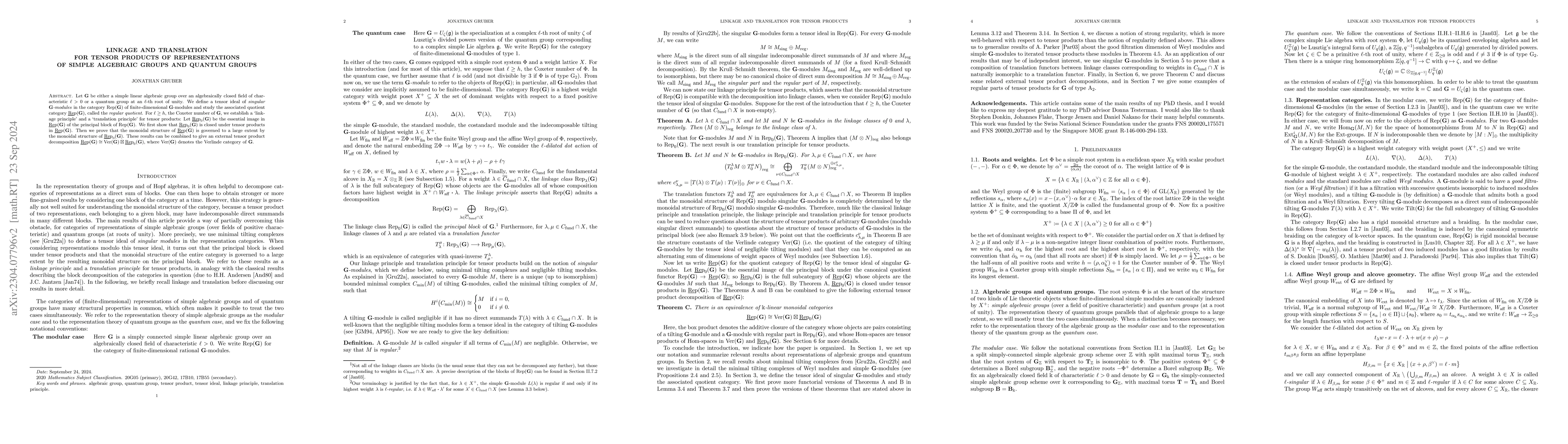 Let $\mathbf{G}$ be either a simple linear algebraic group over an algebraically closed field of characteristic $\ell>0$ or a quantum group at an $\ell$-th root of unity. We define a tensor ideal of singular $\mathbf{G}$-modules in the category $\mathrm{Rep}(\mathbf{G})$ of finite-dimensional $\mathbf{G}$-modules and study the associated quotient category $\mathrm{\underline{Re}p}(\mathbf{G})$, called the regular quotient. Our main results are a 'linkage principle' and a 'translation principle' for tensor products: Let $\mathrm{\underline{Re}p}_0(\mathbf{G})$ be the essential image in $\mathrm{\underline{Re}p}(\mathbf{G})$ of the principal block of $\mathrm{Rep}(\mathbf{G})$. We first show that $\mathrm{\underline{Re}p}_0(\mathbf{G})$ is closed under tensor products in $\mathrm{\underline{Re}p}(\mathbf{G})$. Then we prove that the monoidal structure of $\mathrm{\underline{Re}p}(\mathbf{G})$ is governed to a large extent by the monoidal structure of $\mathrm{\underline{Re}p}_0(\mathbf{G})$. These results can be combined to give an external tensor product decomposition $\mathrm{\underline{Re}p}(\mathbf{G}) \cong \mathrm{Ver}(\mathbf{G}) \boxtimes \mathrm{\underline{Re}p}_0(\mathbf{G})$, where $\mathrm{Ver}(\mathbf{G})$ denotes the Verlinde category of $\mathbf{G}$.