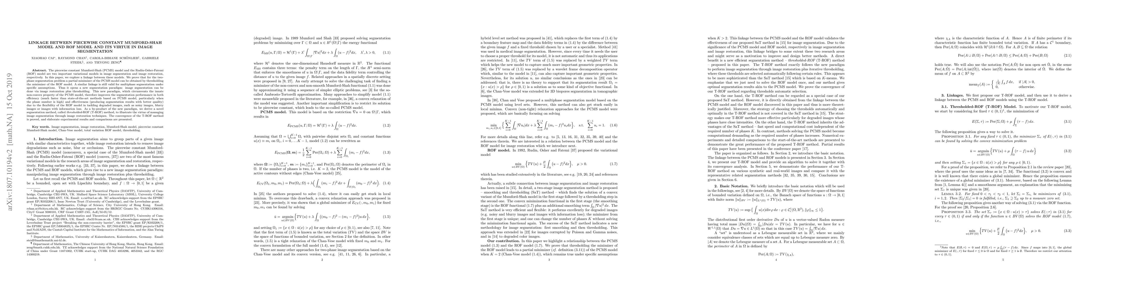 This paper establishes a connection between the piecewise constant Mumford-Shah model and the Rudin-Osher-Fatemi model, demonstrating that PCMS can be obtained by thresholding the ROF model's minimizer. This new segmentation paradigm enhances efficiency and effectiveness by leveraging the ROF model's flexibility in handling degraded images, leading to the development of the novel thresholded-ROF method.