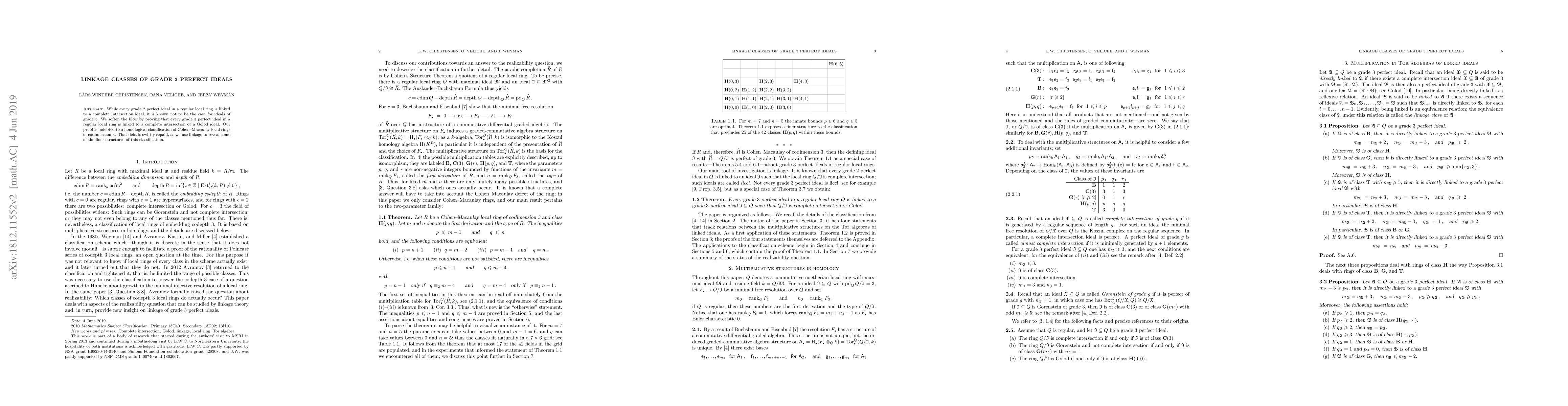 The paper proves that every grade 3 perfect ideal in a regular local ring is linked to either a complete intersection or a Golod ideal, using a homological classification of Cohen-Macaulay local rings of codimension 3 to demonstrate this linkage.