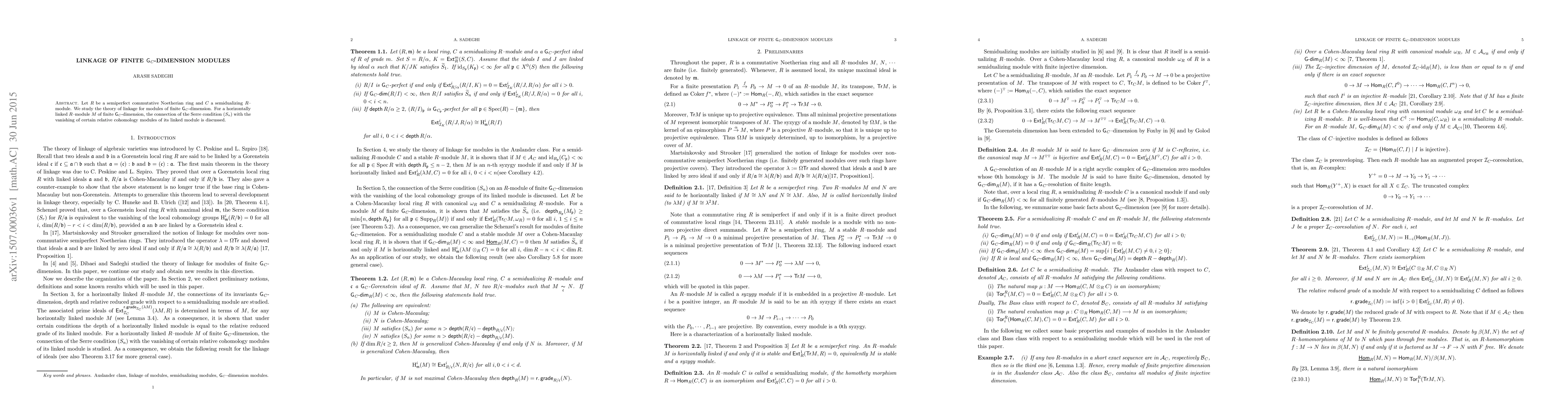 This paper explores the linkage theory for modules of finite G_C-dimension over a semiperfect commutative Noetherian ring R, focusing on horizontally linked modules. It examines the relationship between the Serre condition (S_n) and the vanishing of relative cohomology modules in these linked modules.
