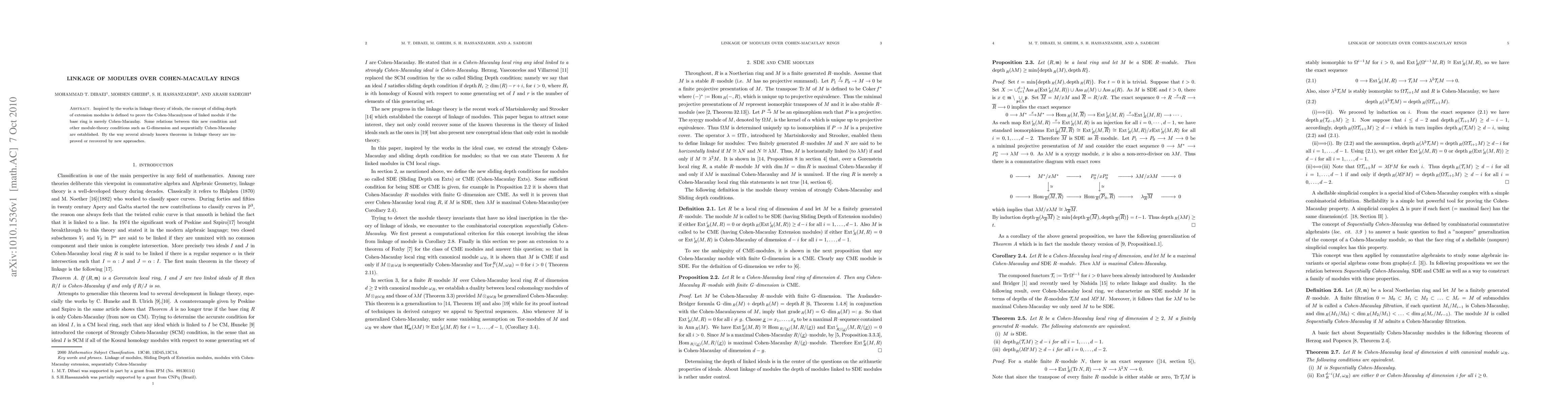This paper introduces sliding depth to study extension modules over Cohen-Macaulay rings, proving that linked modules remain Cohen-Macaulay under certain conditions. It also establishes connections between sliding depth and module-theoretic properties like G-dimension and sequentially Cohen-Macaulay, while improving or rediscovering existing linkage theory results.