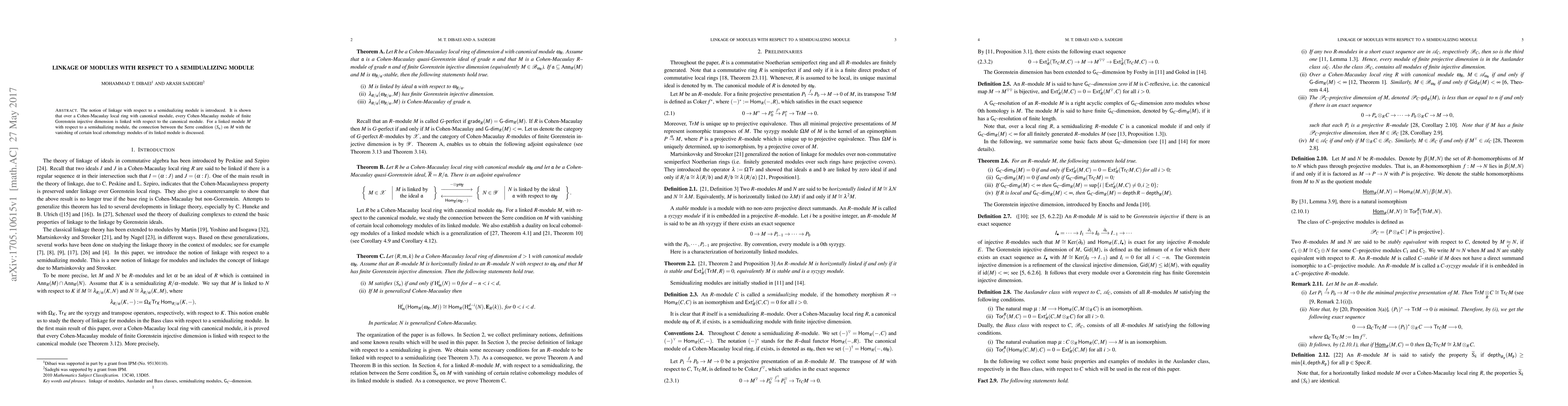 Summary: This paper introduces the concept of linkage concerning a semidualizing module and demonstrates that in Cohen-Macaulay local rings, every Cohen-Macaulay module of finite Gorenstein injective dimension is linked with respect to the canonical module. It further explores the relationship between the Serre condition $(S_n)$ and the vanishing of specific local cohomology modules for linked modules.