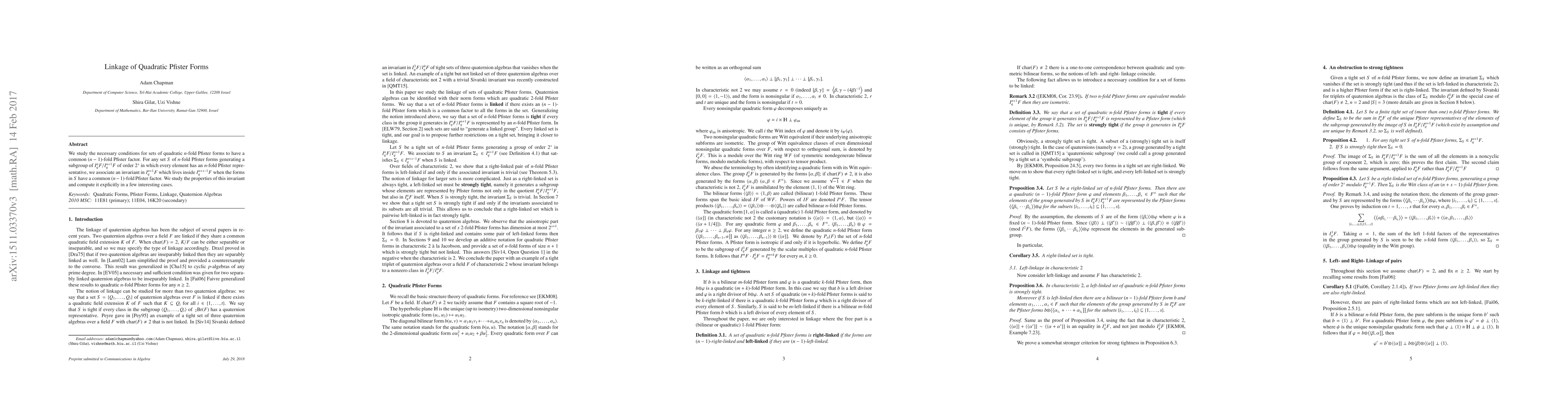 This paper investigates the conditions under which sets of quadratic $n$-fold Pfister forms share a common $(n-1)$-fold Pfister factor, introducing an invariant in $I_q^{n+1} F$ that resides within $I_q^{n+s-1} F$ under such conditions. The properties of this invariant are explored, with explicit computations provided for specific cases.