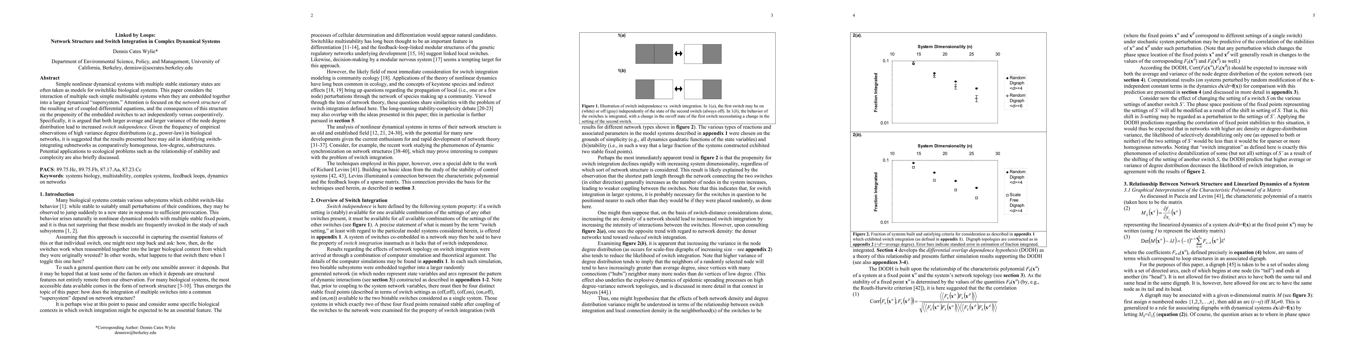 Simple nonlinear dynamical systems with multiple stable stationary states are often taken as models for switchlike biological systems. This paper considers the interaction of multiple such simple multistable systems when they are embedded together into a larger dynamical "supersystem." Attention is focused on the network structure of the resulting set of coupled differential equations, and the consequences of this structure on the propensity of the embedded switches to act independently versus cooperatively. Specifically, it is argued that both larger average and larger variance of the node degree distribution lead to increased switch independence. Given the frequency of empirical observations of high variance degree distributions (e.g., power-law) in biological networks, it is suggested that the results presented here may aid in identifying switch-integrating subnetworks as comparatively homogenous, low-degree, substructures. Potential applications to ecological problems such as the relationship of stability and complexity are also briefly discussed.