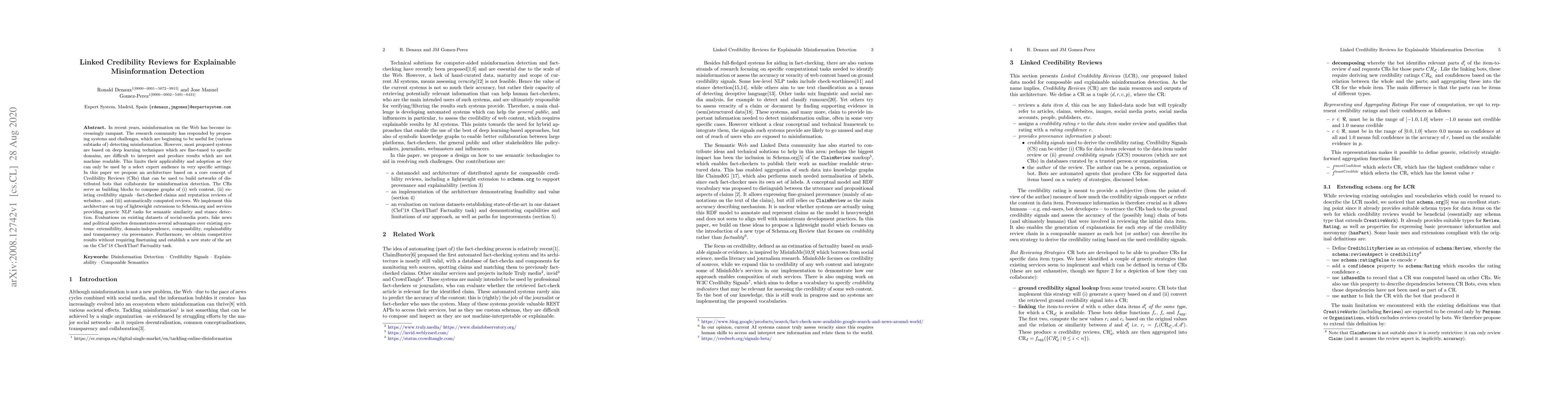 This paper proposes an architecture based on Credibility Reviews (CRs) to detect misinformation using a network of distributed bots. The CRs enable extensible, domain-independent, and explainable detection without the need for fine-tuning, achieving competitive results and establishing a new state of the art on the Clef'18 CheckThat! Factuality task.