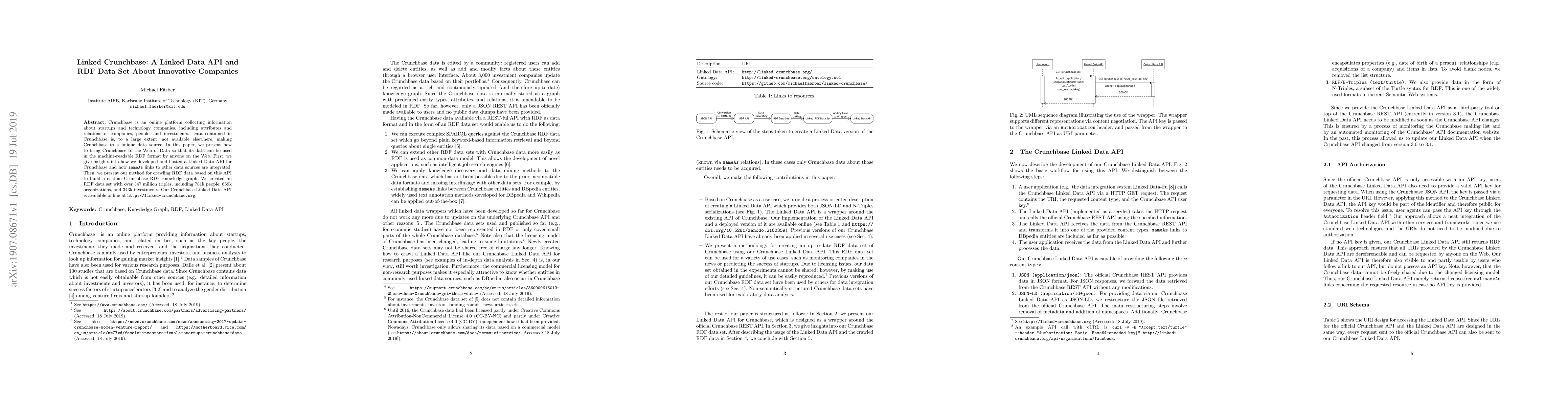 This paper details the development of a Linked Data API for Crunchbase, enabling its unique startup and technology company data to be accessed in RDF format. The authors present a custom Crunchbase RDF knowledge graph containing over 347 million triples, and the API is publicly available online.