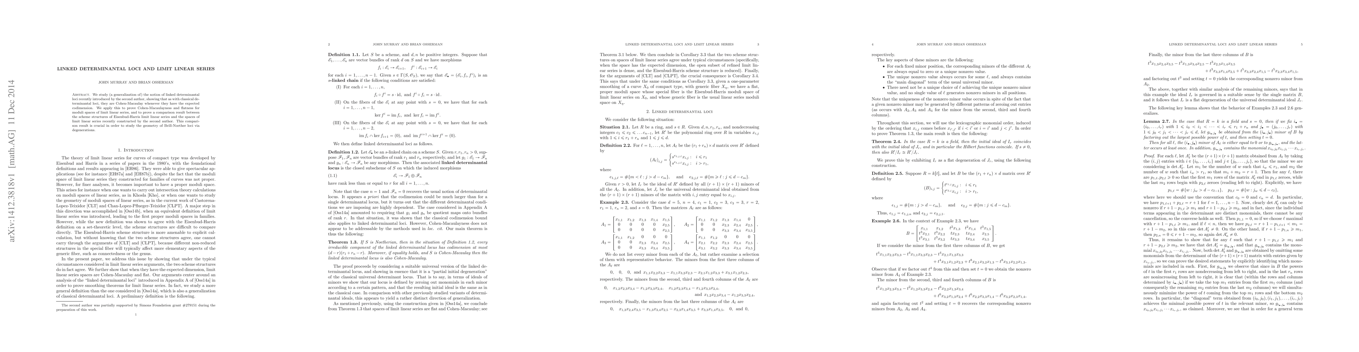 This paper explores generalized linked determinantal loci, proving their Cohen-Macaulayness under expected codimension conditions. It applies these results to establish Cohen-Macaulayness and flatness for moduli spaces of limit linear series, and provides a crucial comparison between Eisenbud-Harris and newly constructed limit linear series spaces for studying Brill-Noether loci.