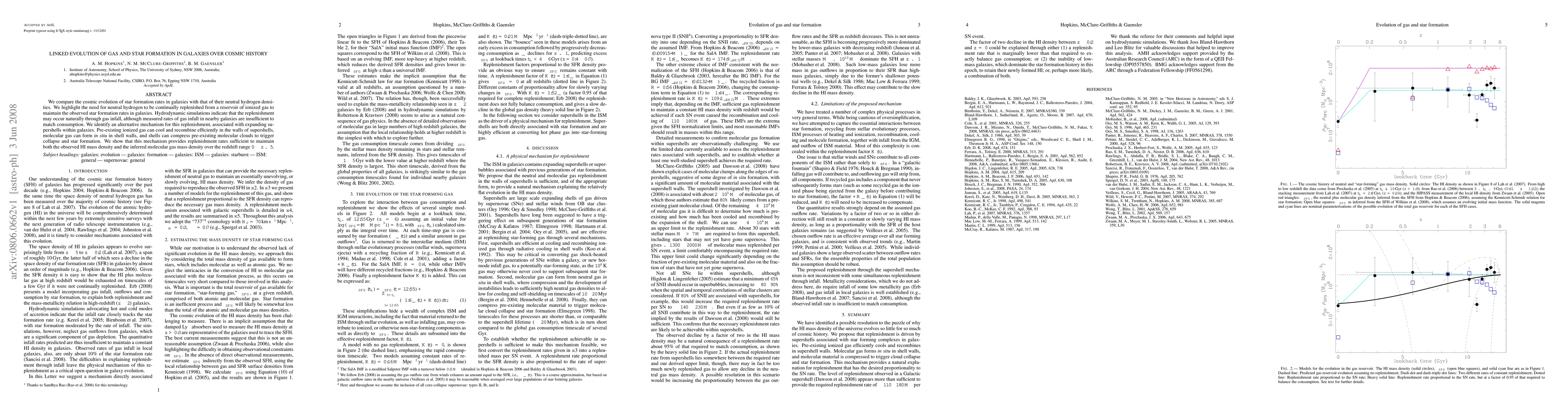 This research investigates the linked evolution of gas and star formation in galaxies, finding that neutral hydrogen replenishment is crucial to sustain star formation rates. Expanding supershells within galaxies are identified as a key mechanism for this replenishment, providing sufficient rates to maintain observed gas densities over cosmic history.
