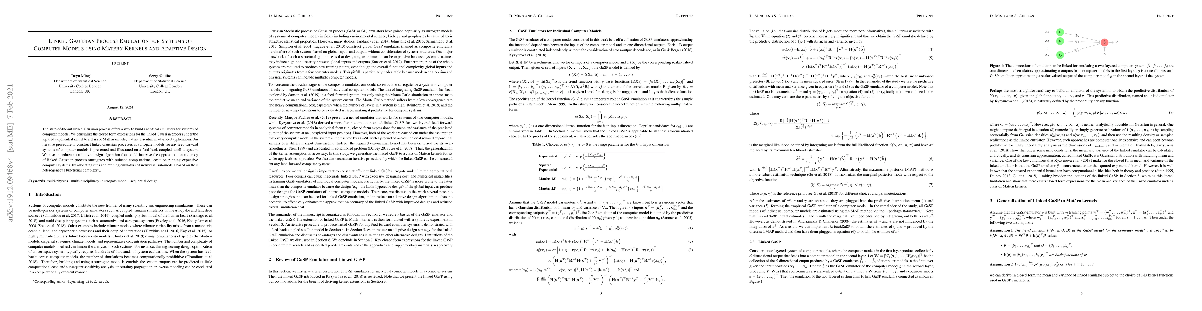 This paper proposes a linked Gaussian process framework using Matérn kernels for emulating systems of computer models, presenting an adaptive design algorithm to enhance accuracy while minimizing computational costs. The method is demonstrated through a feedback-coupled satellite system.