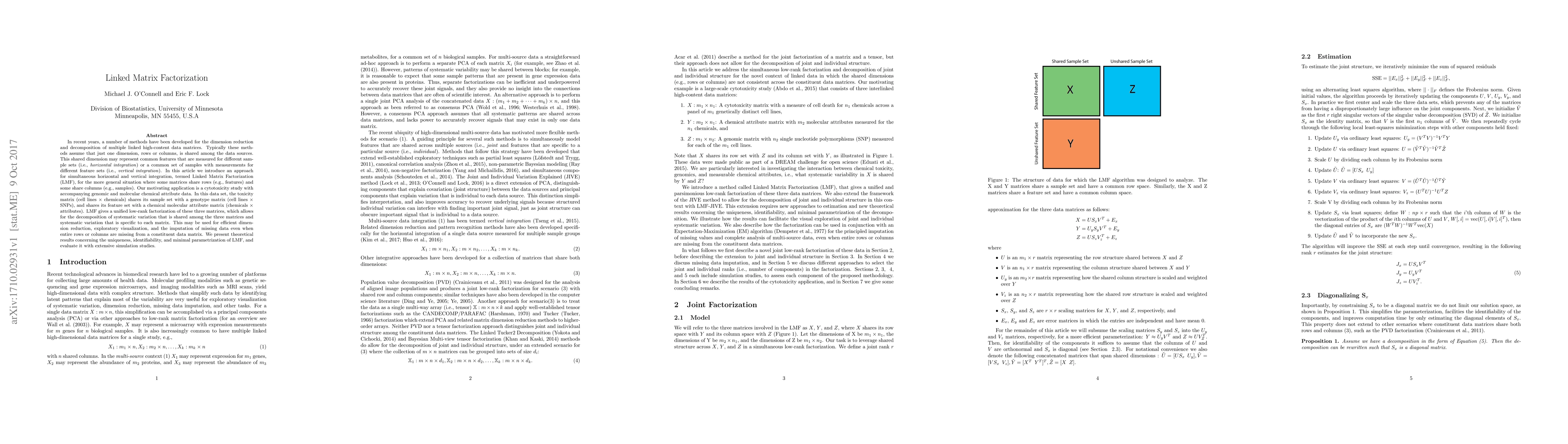 The paper introduces Linked Matrix Factorization (LMF), a method for simultaneous horizontal and vertical integration of multiple linked high-content data matrices that share rows or columns. LMF provides a unified low-rank factorization for matrices sharing features or samples, facilitating dimension reduction, visualization, and imputation of missing data. Theoretical results and simulation studies validate its effectiveness.