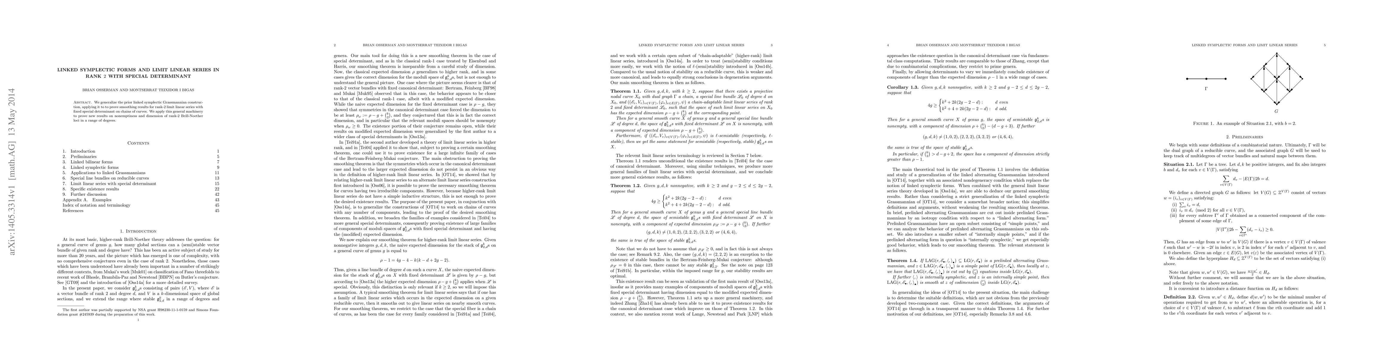 Summary: This paper generalizes linked symplectic Grassmannian constructions to demonstrate smoothing results for rank-2 limit linear series with a fixed special determinant on chains of curves, and applies this to establish new findings on the nonemptiness and dimension of rank-2 Brill-Noether loci.