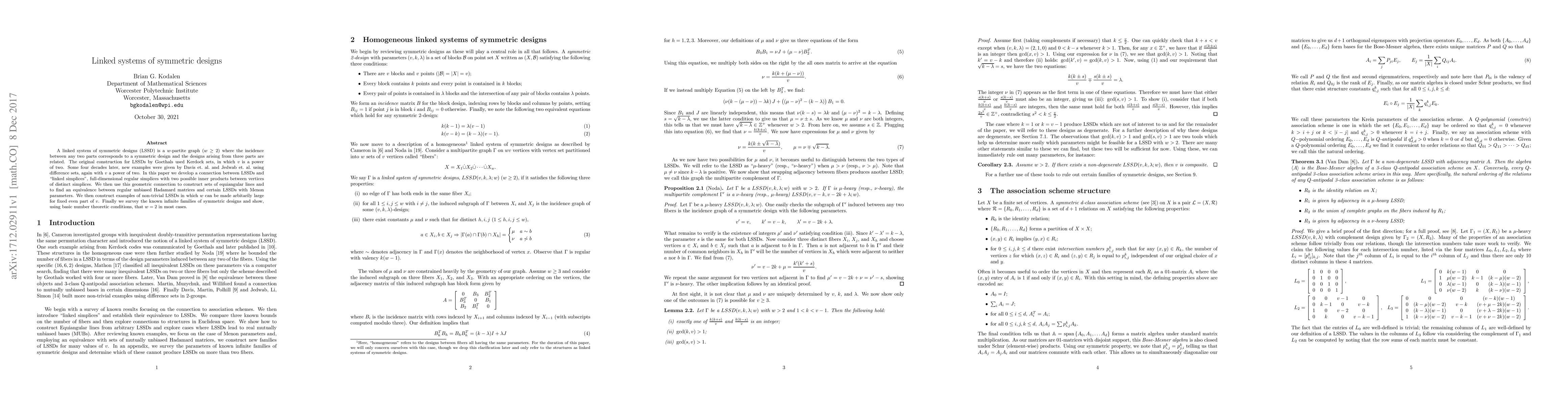 A linked system of symmetric designs (LSSD) is a $w$-partite graph ($w\geq 2$) where the incidence between any two parts corresponds to a symmetric design and the designs arising from three parts are related. The original construction for LSSDs by Goethals used Kerdock sets, in which $v$ is a power of two. Some four decades later, new examples were given by Davis et.\ al.\ and Jedwab et.\ al.\ using difference sets, again with $v$ a power of two. In this paper we develop a connection between LSSDs and "linked simplices", full-dimensional regular simplices with two possible inner products between vertices of distinct simplices. We then use this geometric connection to construct sets of equiangular lines and to find an equivalence between regular unbiased Hadamard matrices and certain LSSDs with Menon parameters. We then construct examples of non-trivial LSSDs in which $w$ can be made arbitarily large for fixed even part of $v$. Finally we survey the known infinite families of symmetric designs and show, using basic number theoretic conditions, that $w=2$ in most cases.