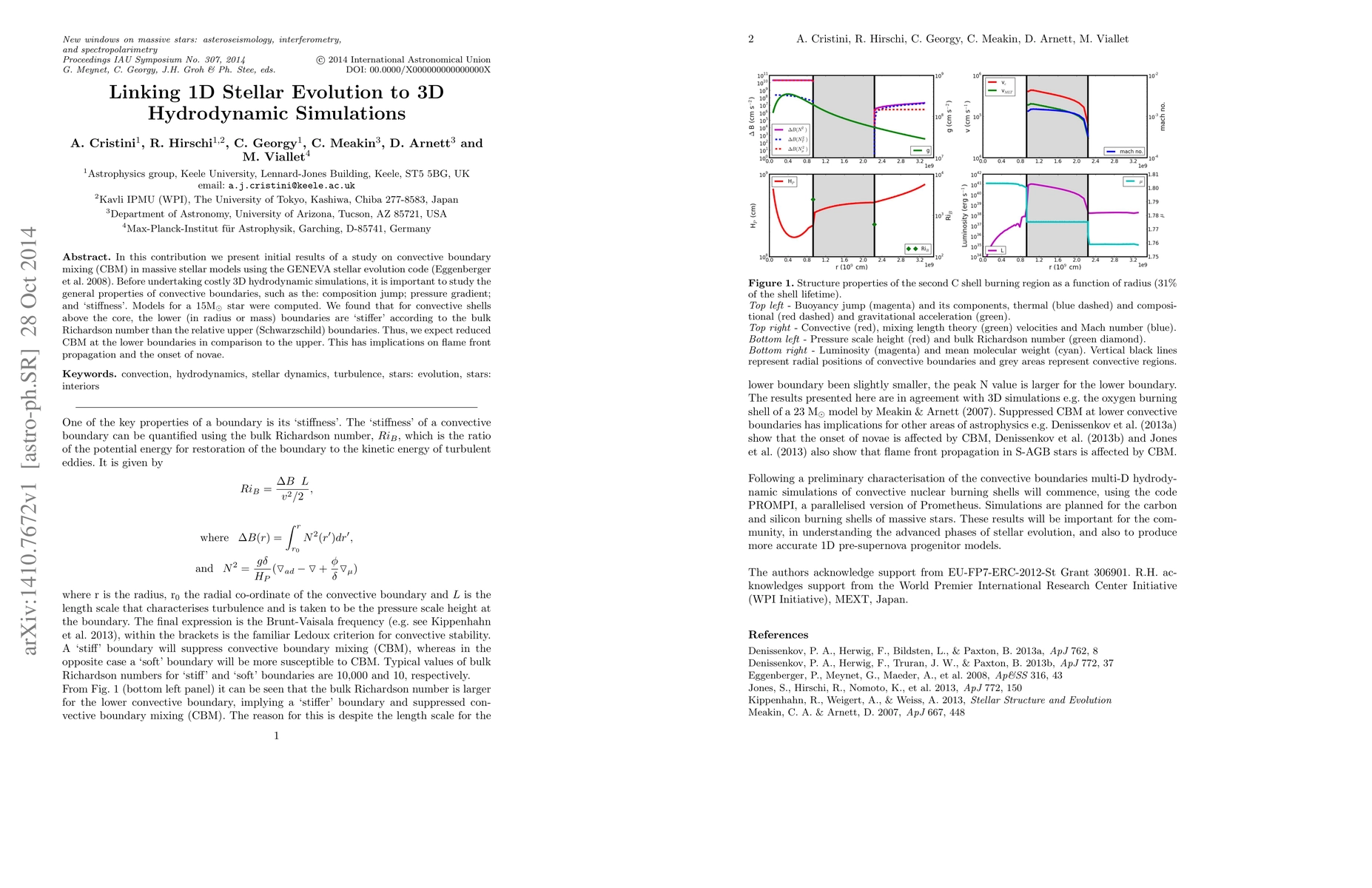In this contribution we present initial results of a study on convective boundary mixing (CBM) in massive stellar models using the GENEVA stellar evolution code. Before undertaking costly 3D hydrodynamic simulations, it is important to study the general properties of convective boundaries, such as the: composition jump; pressure gradient; and `stiffness'. Models for a 15Mo star were computed. We found that for convective shells above the core, the lower (in radius or mass) boundaries are `stiffer' according to the bulk Richardson number than the relative upper (Schwarzschild) boundaries. Thus, we expect reduced CBM at the lower boundaries in comparison to the upper. This has implications on flame front propagation and the onset of novae.